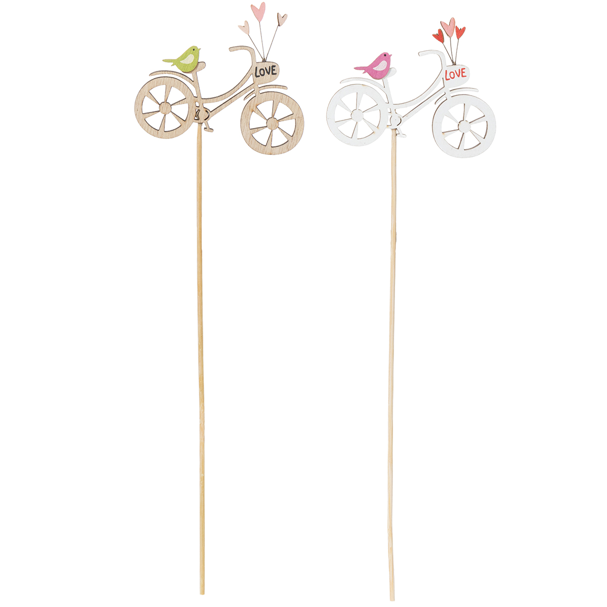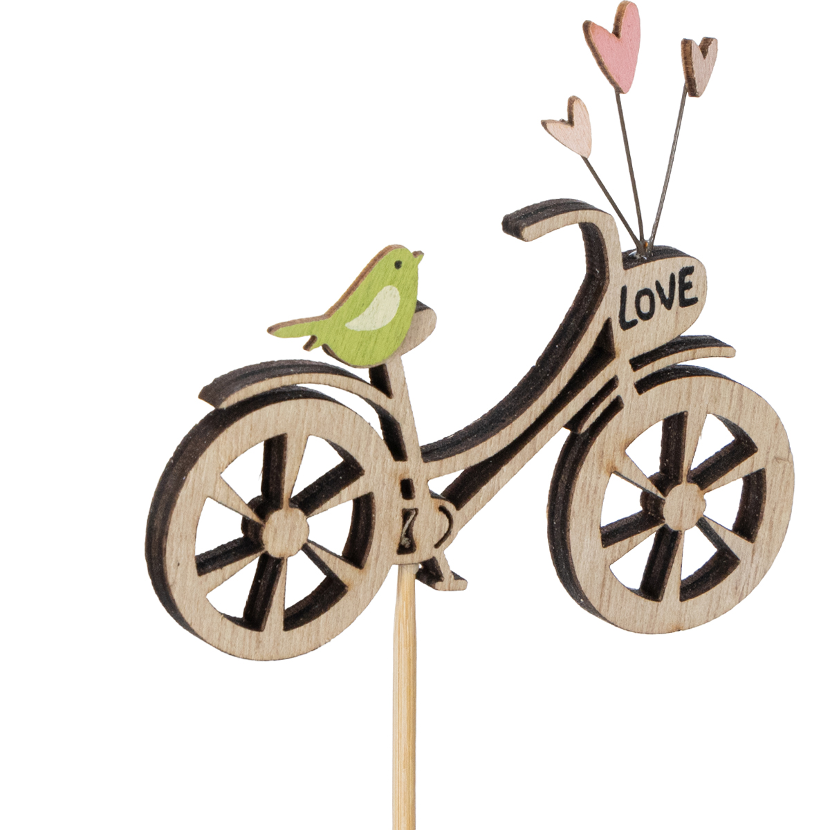 Holzstecker Fahrrad mit Herzen und Vogelmotiv 8cm 12er-Set für Frühjahrsdekoration