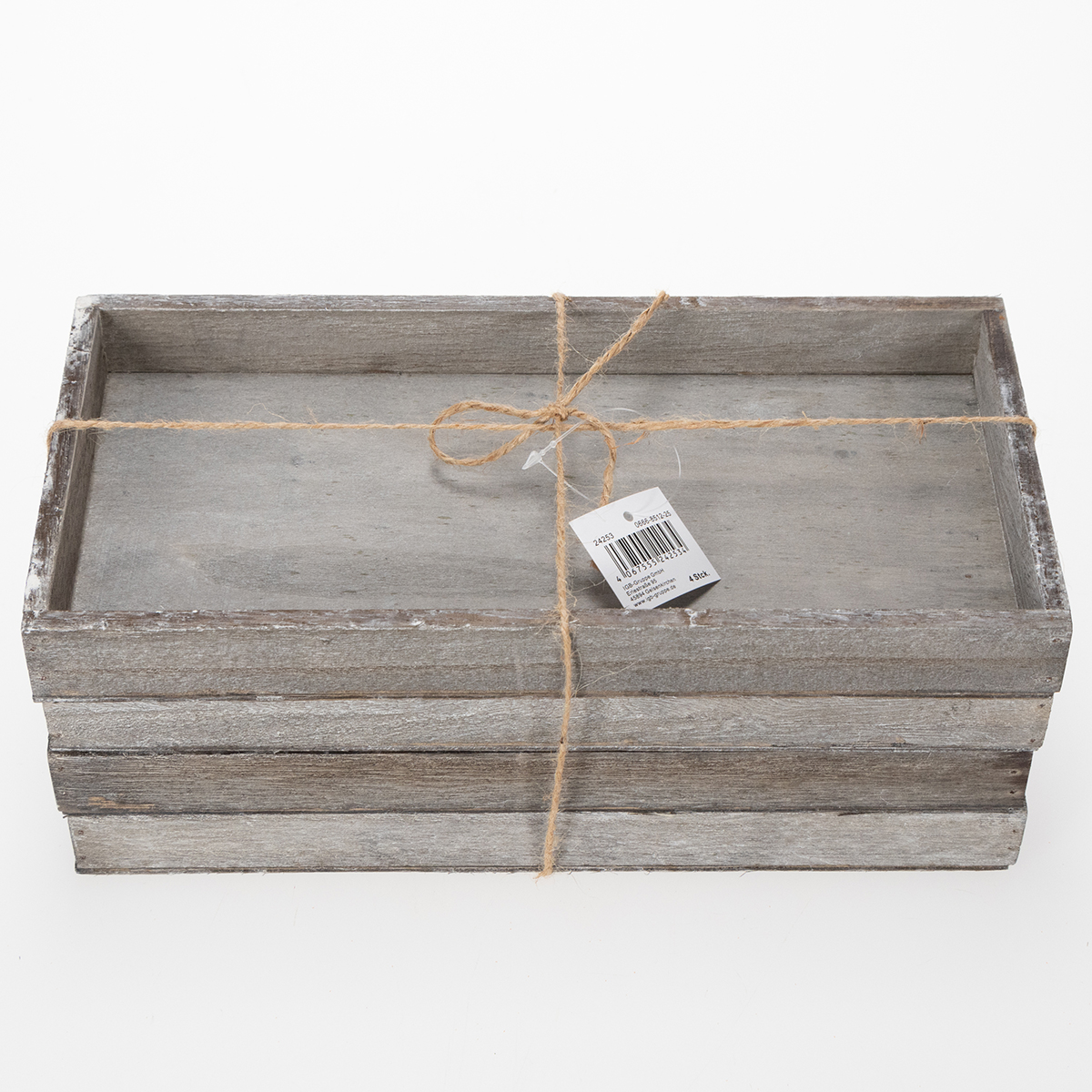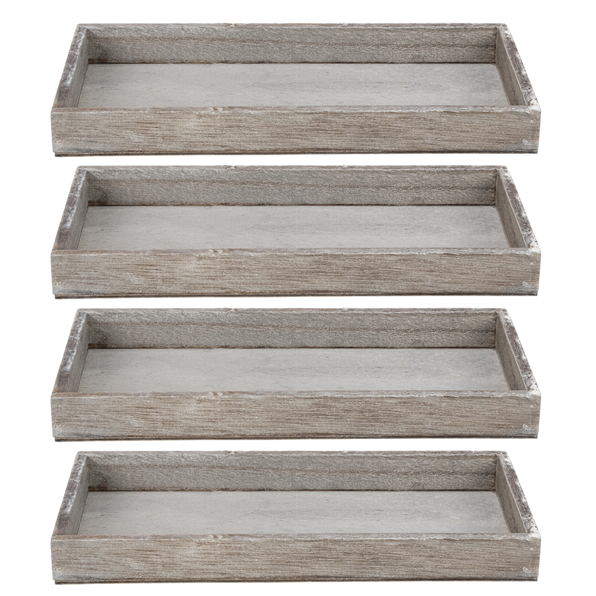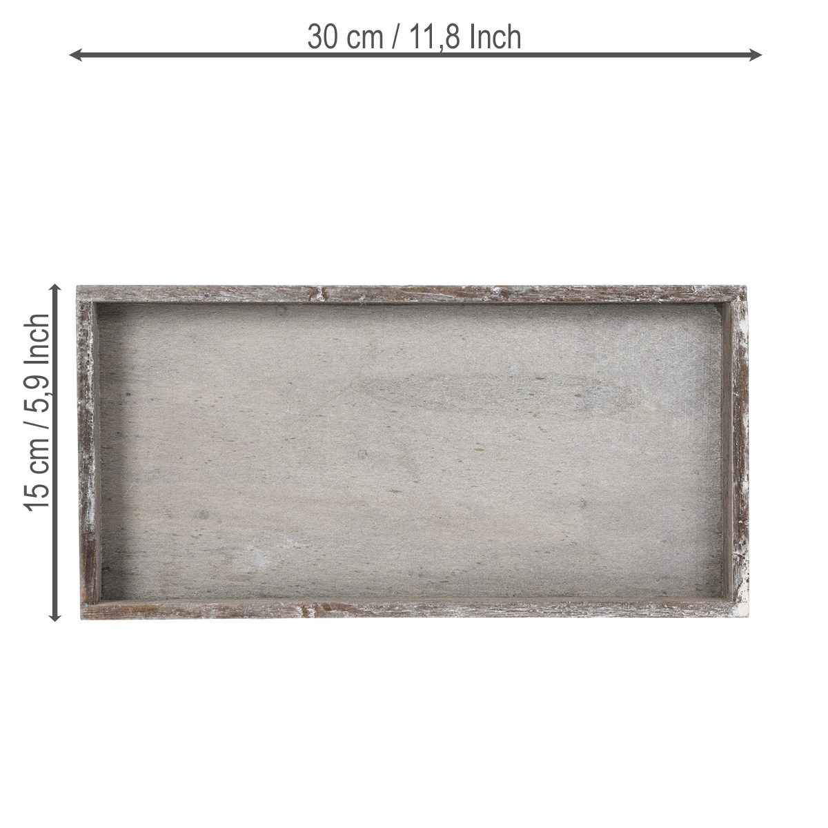 Produktname: Holztablett rechteckig grau 30 x 15 cm – 4er-Set für Dekoration und Servieren