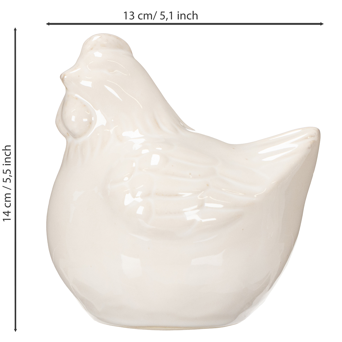 Ob Frühling, Ostern oder das ganze Jahr über: Die glänzende Hühnerfigur bietet zahllose Dekorationsmöglichkeiten, die sich an Ihre Bedürfnisse anpassen lassen. Mit ihrer robusten Verarbeitung und der zeitlosen Optik ist sie sowohl einzeln als auch in Kombination ein echtes Highlight.