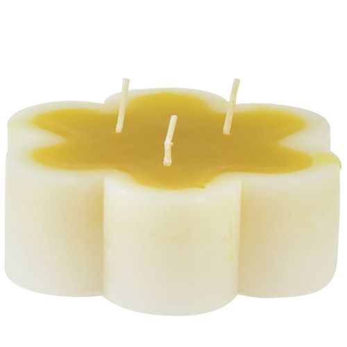 Mehr DetailsDreidochtkerze Deko Blüte Kerze Gelb Weiß Ø11,5cm H4cm