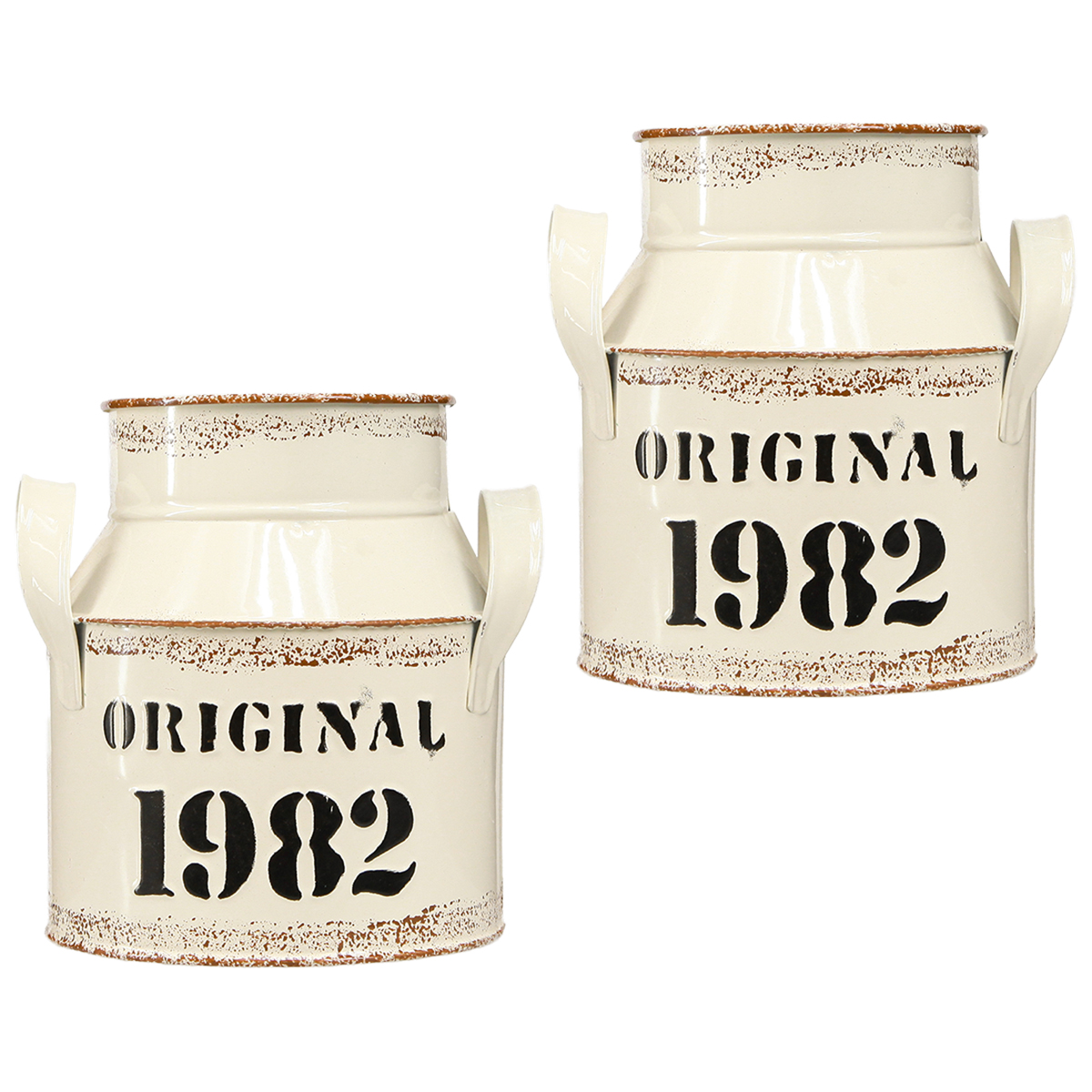 Kanne Metall Deko Creme Rost „Original 1982“ Vintage Retro 2er Set 16cm