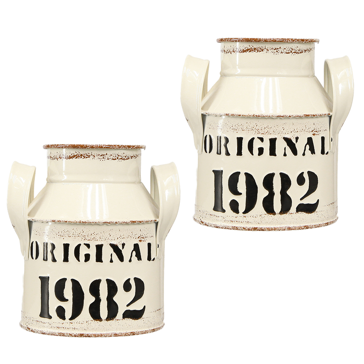 Kanne Metall Deko „Original 1982“ Creme Rost Vintage Garten Deko H13cm 2 Stück