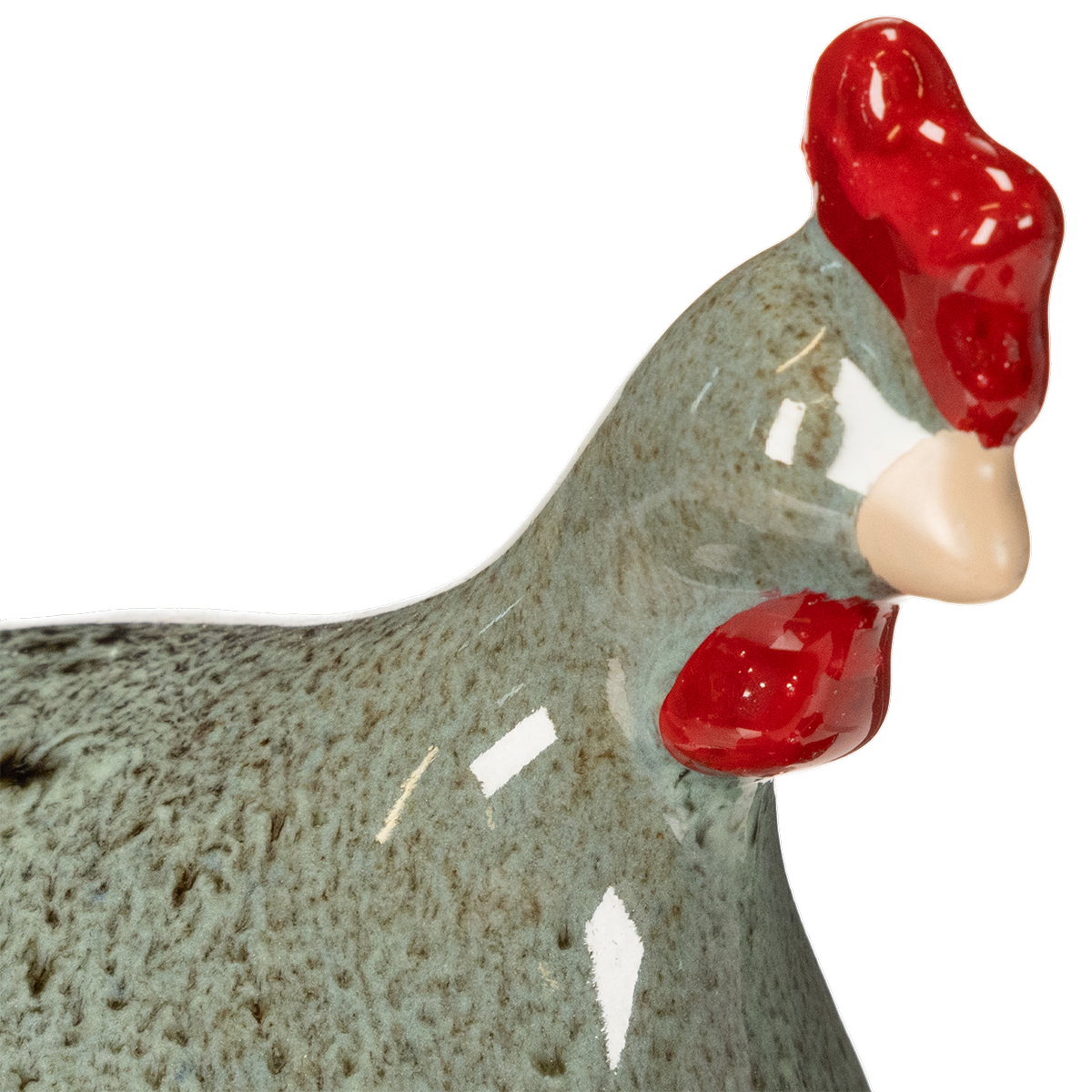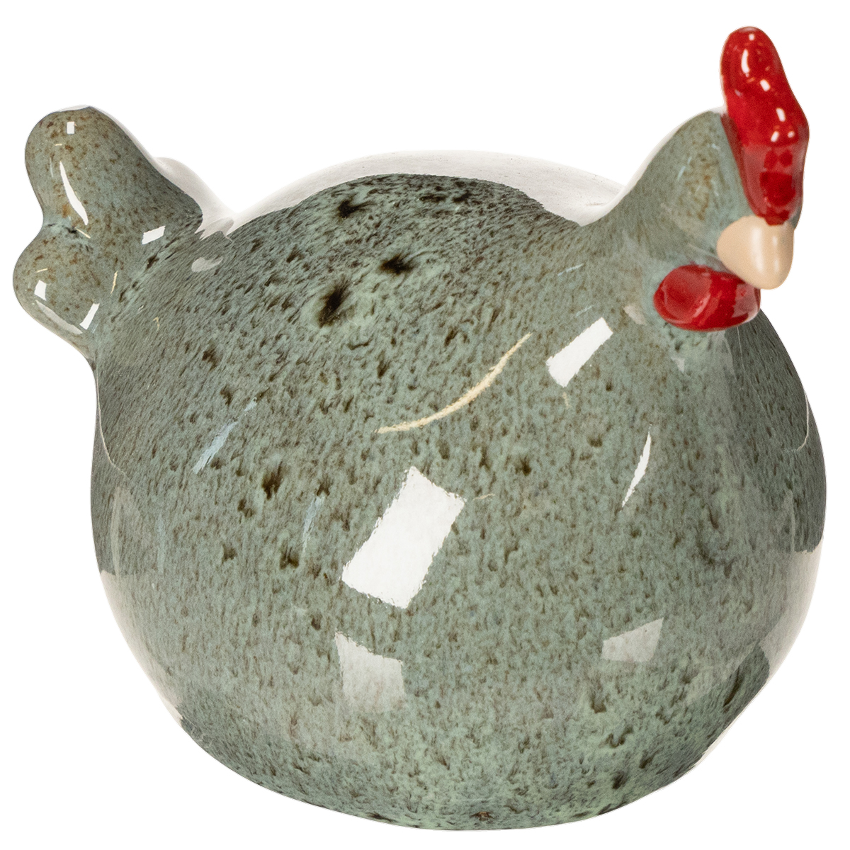 Produktname: Keramik Deko Huhn Set 2-teilig 13cm grün rot für rustikale Einrichtung