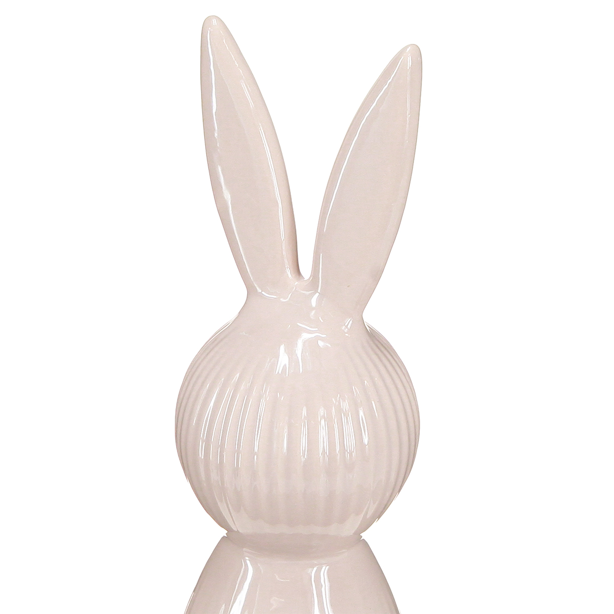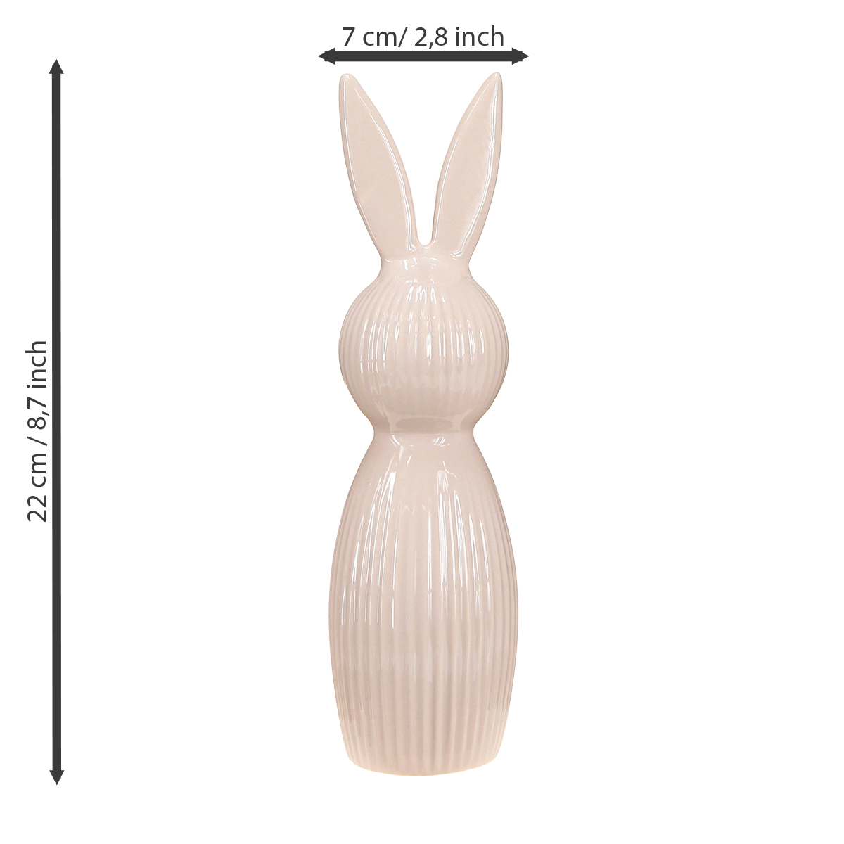 Produktname: Keramik Hase 22 cm rosa mit feiner Rillenstruktur als elegante Dekofigur