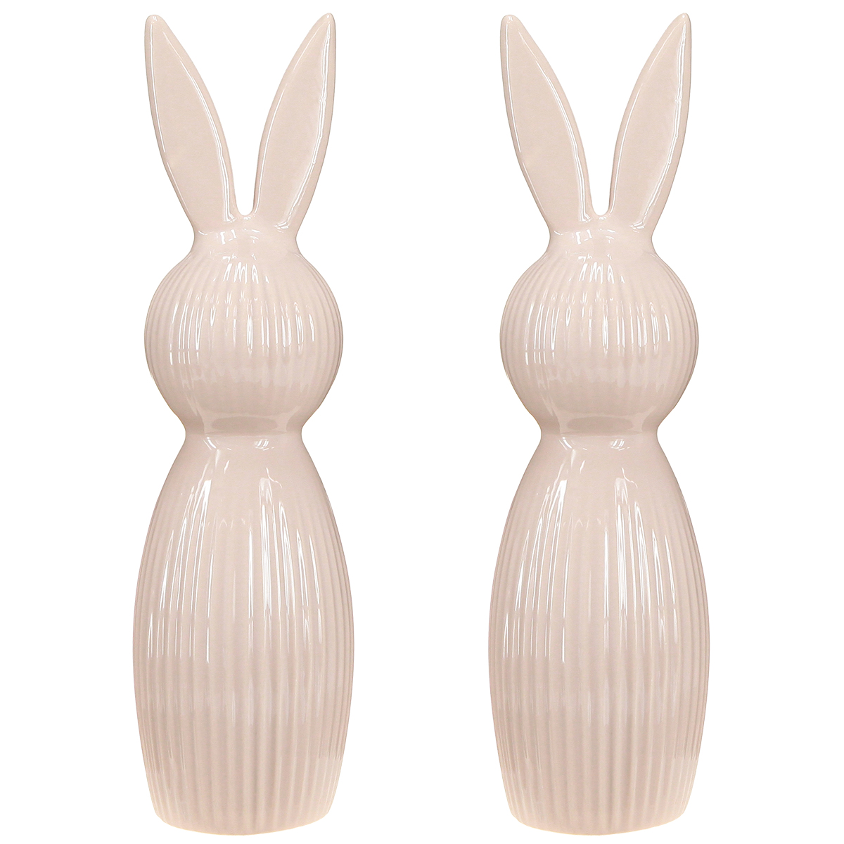 Keramik Hase 22 cm rosa mit feiner Rillenstruktur als elegante Dekofigur