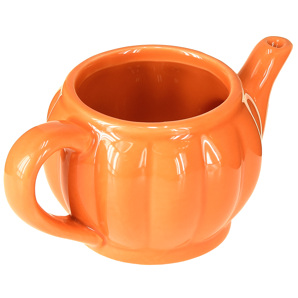 Orangefarbener Keramik-Übertopf im Stil einer Teekanne – Perfekt für Ihre Herbstdekoration