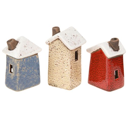 Keramikhäuschen Adventsdeko Creme Rot Grau 8,5/9,5cm 3 St - Weihnachtliche Keramik-Dekoration