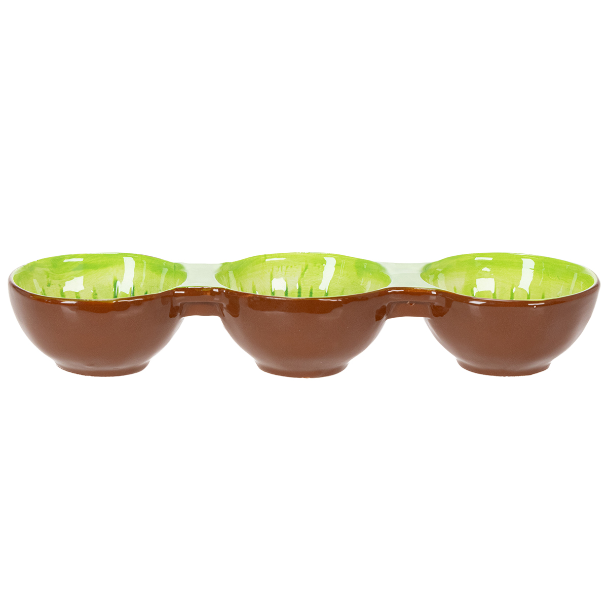 Bringen Sie sommerliche Frische und Stil auf Ihren Tisch! Diese einzigartige handbemalte Keramikschale mit Kiwi-Motiv sorgt mit ihrer fröhlichen Farbgebung und der dreigeteilten Form für perfekte Präsentation. Perfekt für Tapas, Snacks und vieles mehr.