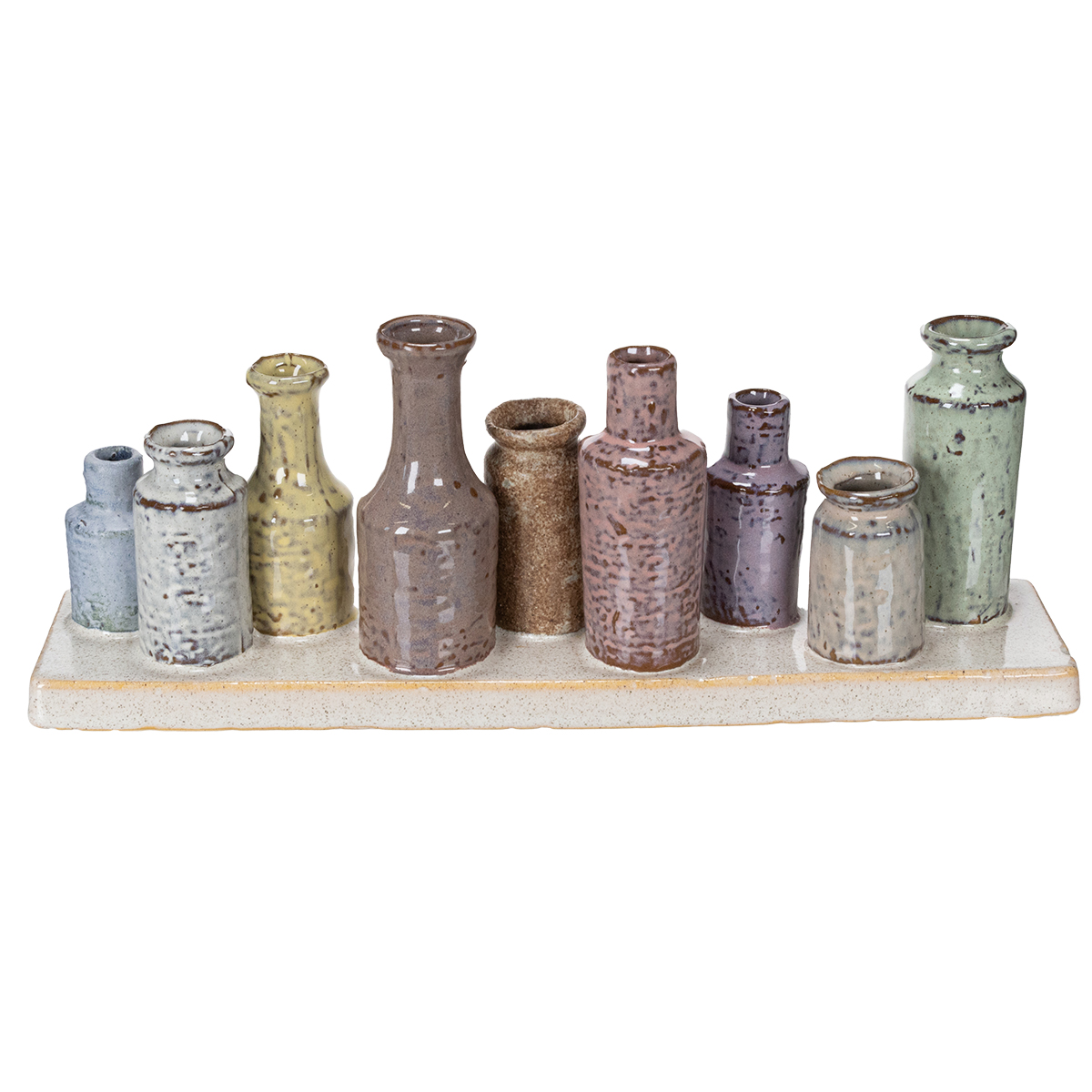 - Neun handgefertigte Keramikvasen in abgestimmten Farben