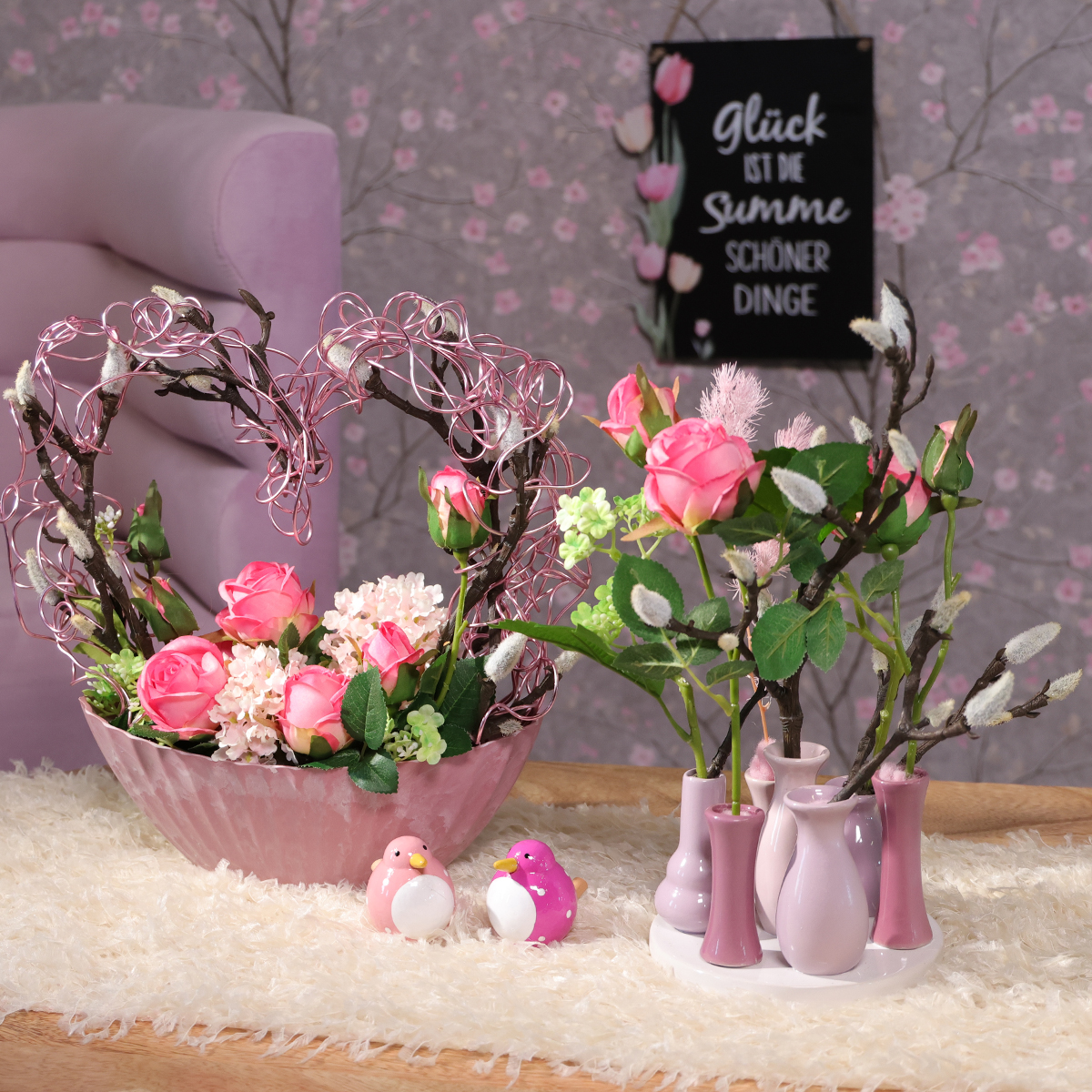 Keramikvasen Set Rosa Lila Rund Pastell 9x14cm Deko Wohnzimmer Tischdeko