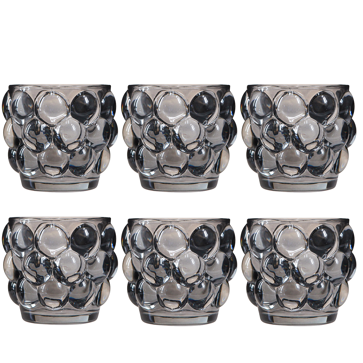 Kerzenhalter Glas Teelichthalter Grau Ø7cm H7cm 6 St Retro-Design für Tischdeko & Wohnambiente