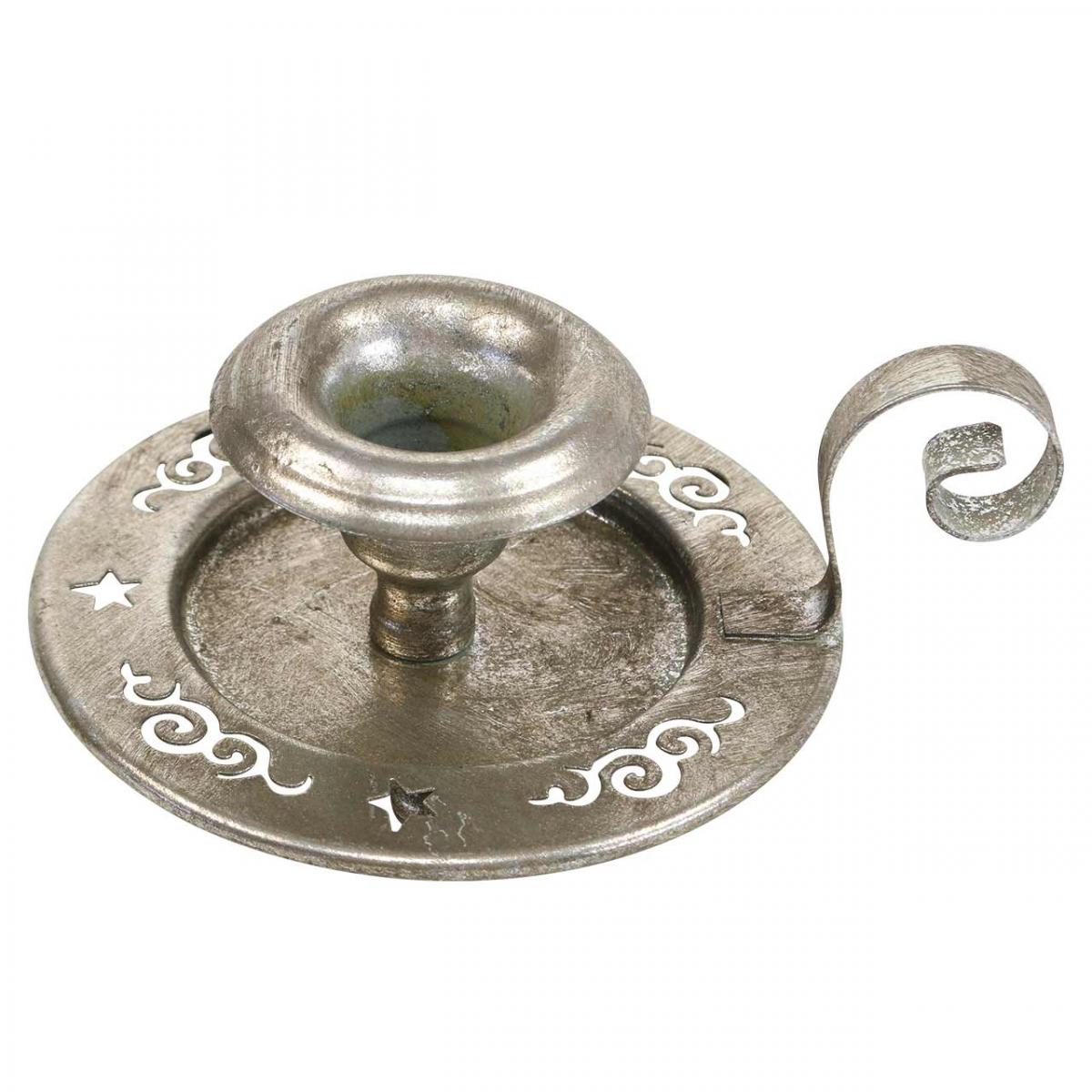 Produktname: Kerzenhalter Metall Kerzenteller mit Henkel Silber Ø12cm