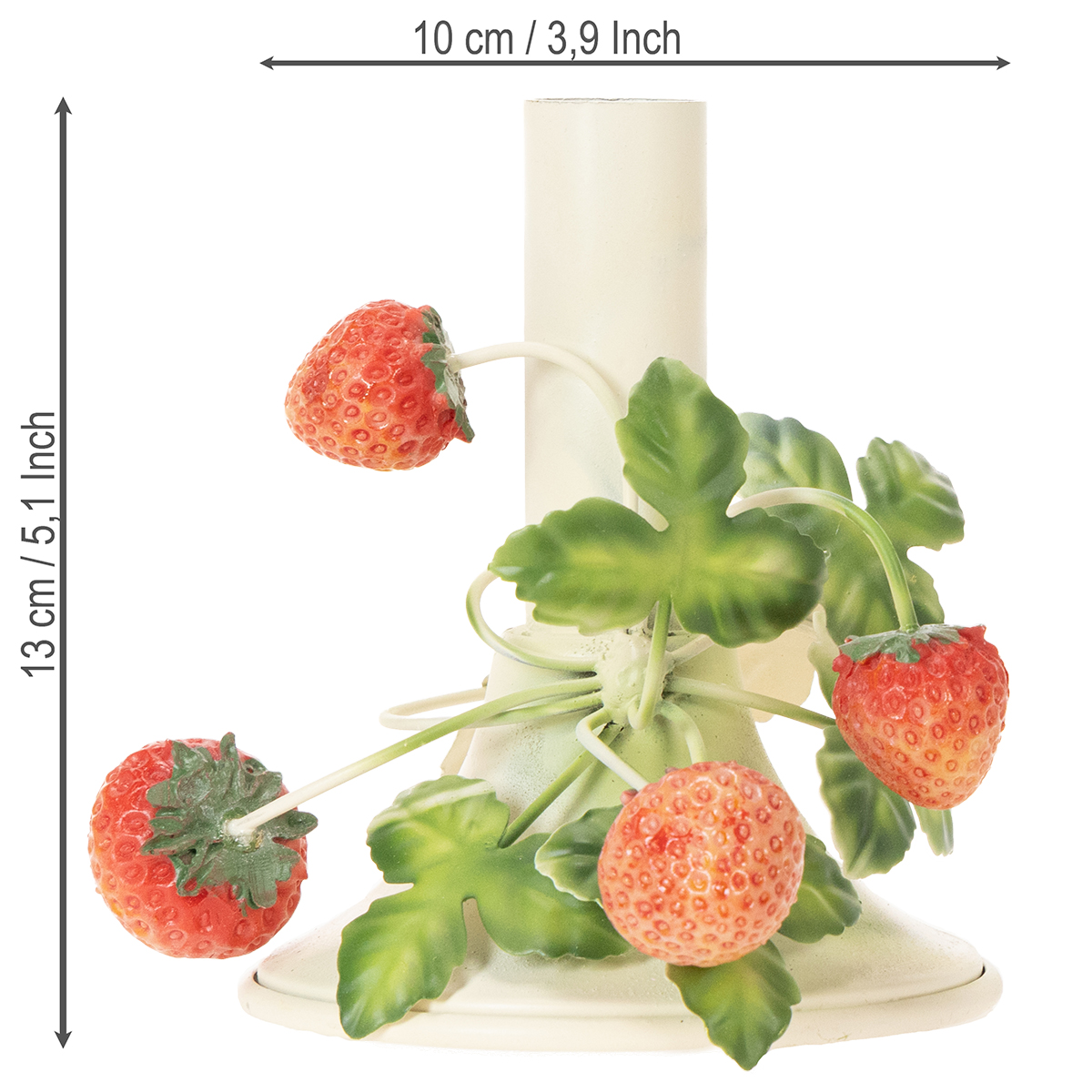 Bringen Sie den Sommer in Ihre Dekoration! Unser cremefarbener Kerzenständer aus Metall vereint stilvolle Eleganz mit verspielten Erdbeerakzenten und verleiht jedem Tisch ein fruchtiges Highlight. Perfekt für Floristen und Blumengeschäfte, die ihren Kunden außergewöhnliche, sommerliche Dekorationsartikel anbieten möchten.