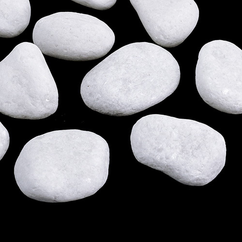 Die weißen Kieselsteine werden in einem Netz angeboten, welches ein Gesamtgewicht von ungefähr 1 Kilogramm besitzt. Sie sind jeweils in etwa zwischen 2,5 und 4 Zentimeter groß, wobei diese Angabe lediglich zur groben Orientierung dient.