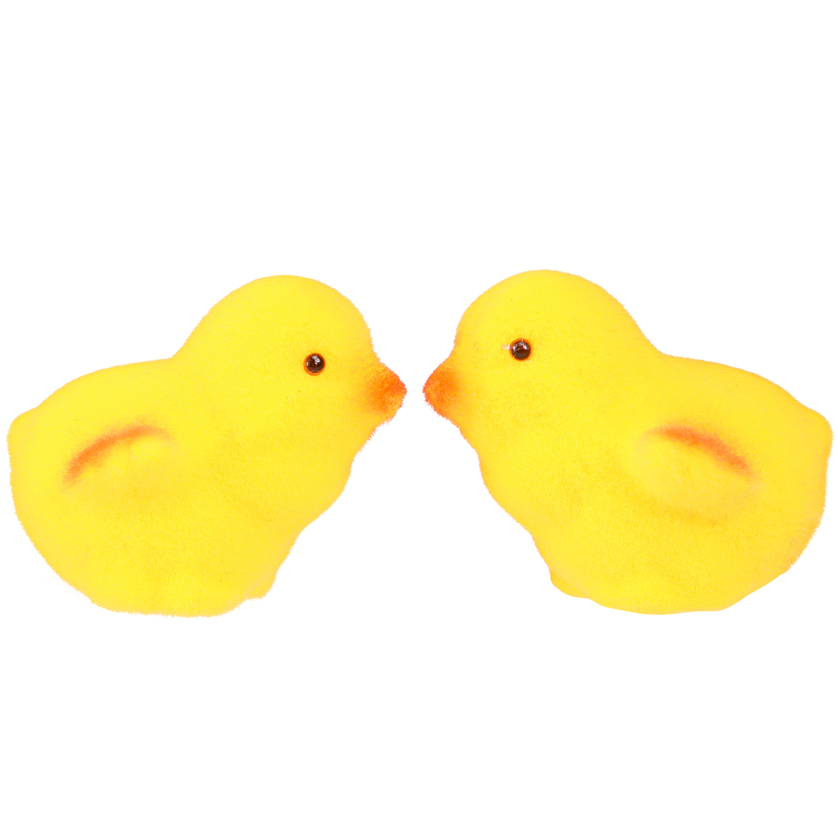 Kleine Osterküken Gelb Orange Beflockt Deko 18 St für Floristen