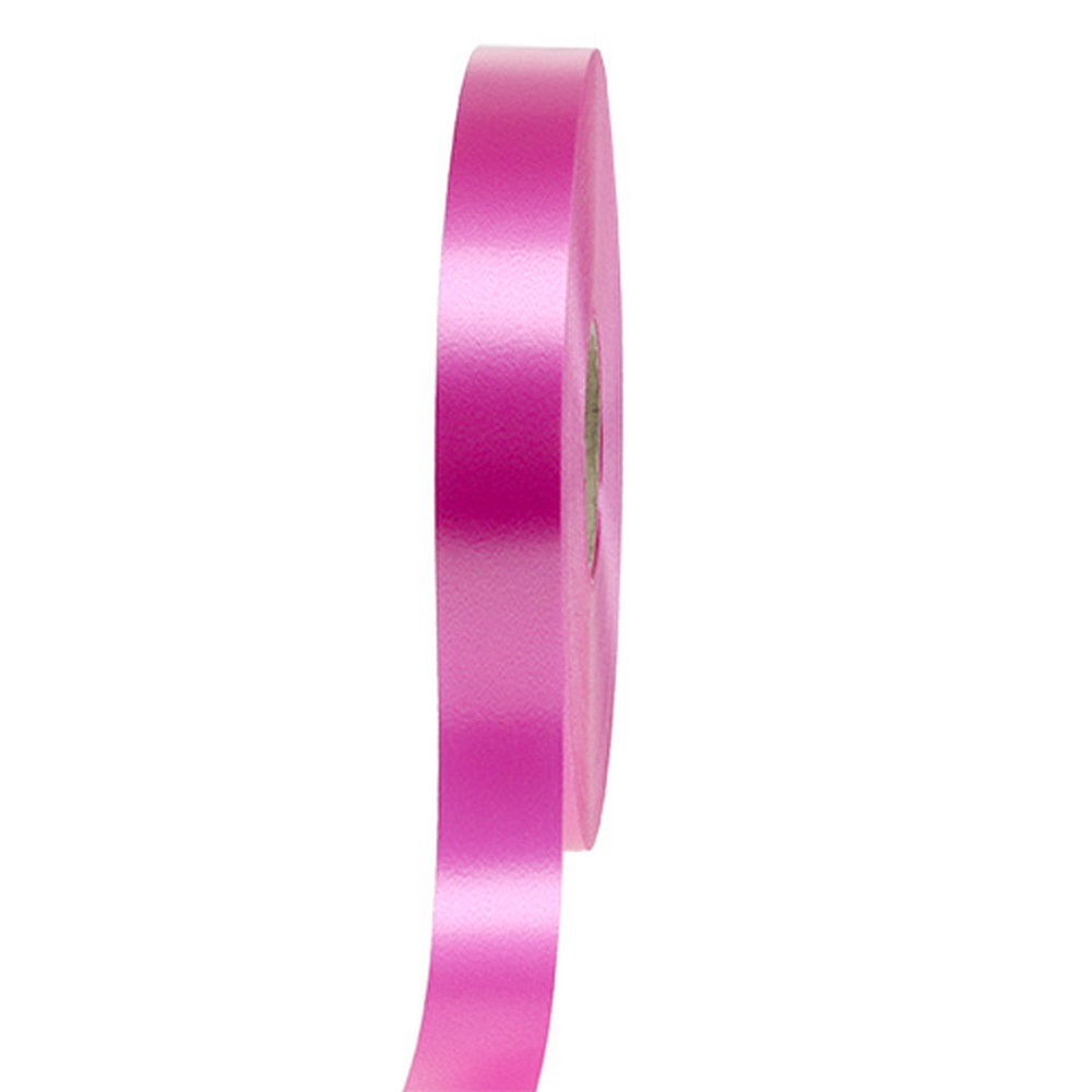 Das Kräuselband in Magenta ist ungefähr 19 Millimeter breit sowie etwa 100 Meter lang. Es besteht zu 100% aus Polypropylen und ist auf einer Papp-Rolle aufgewickelt.