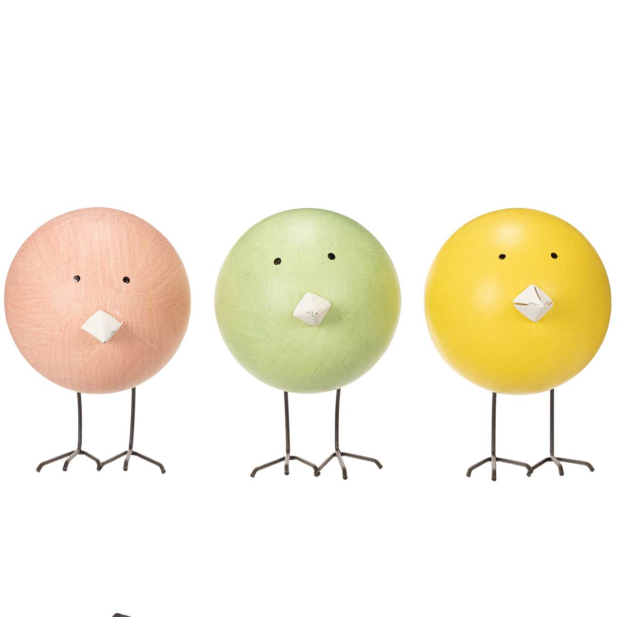 Produktname: Küken Dekofiguren aus Holz und Metall in Pastellfarben, 9,5 cm, 3er Set