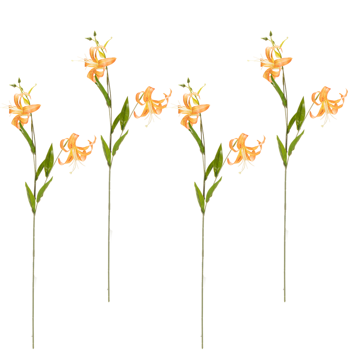 Künstliche Lilien 4er-Set – Realistische orangefarbene Kunstblumen für Hochzeitsdekorationen und Events 77cm