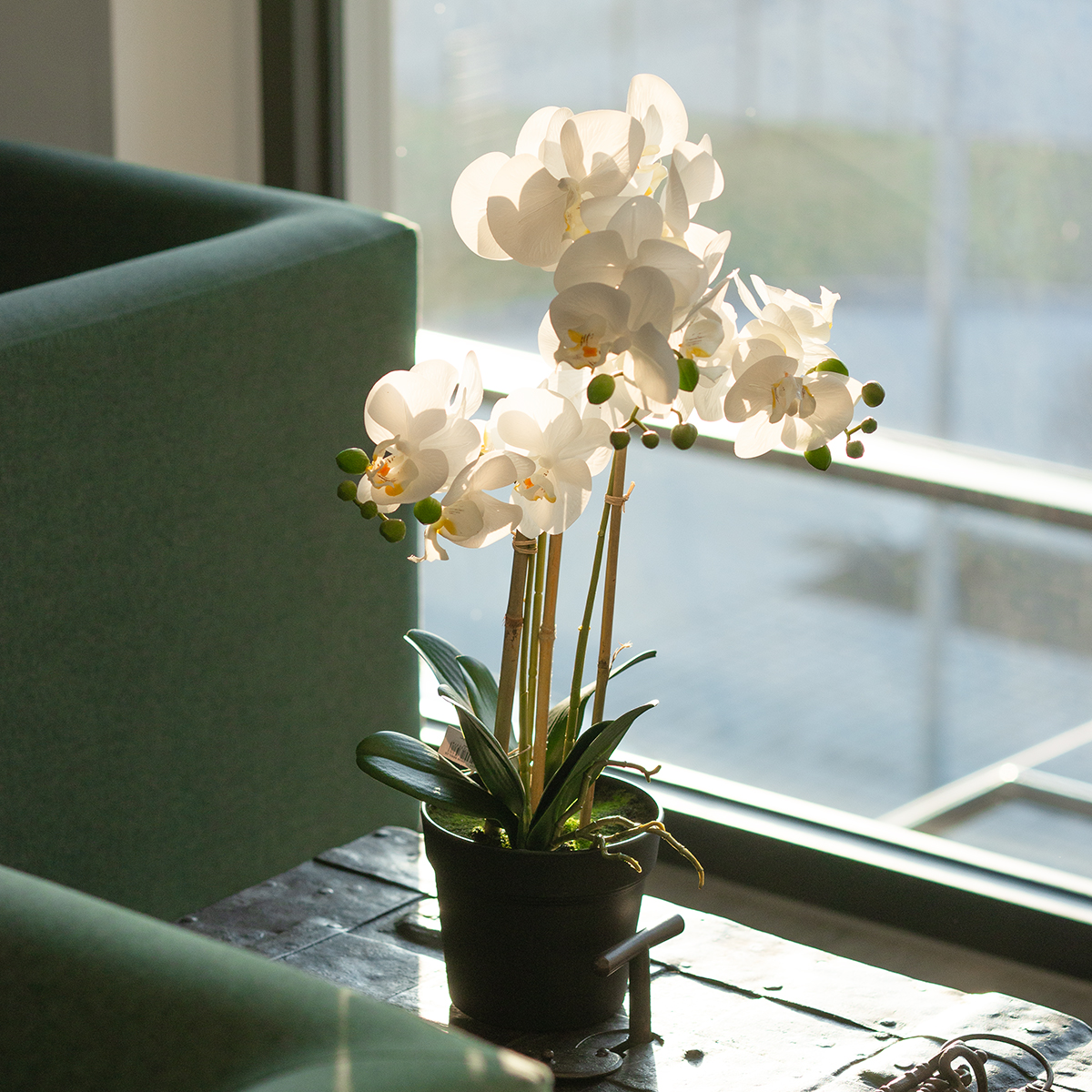 Ob im Wohnzimmer, Büro, in Empfangsbereichen oder für besondere Events – diese Orchidee fügt sich bestens in jede Dekoration ein.