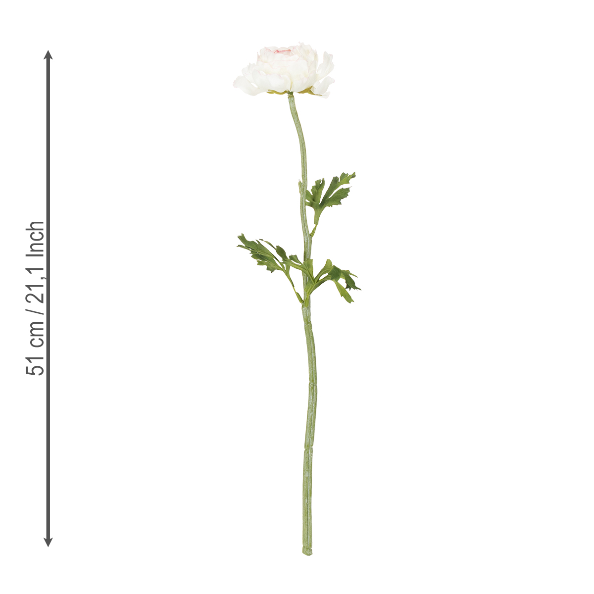Mit einer Länge von 51cm und ihrer filigranen Verarbeitung sind diese künstlichen Ranunkeln die perfekte Ergänzung für jedes Arrangement. Egal, ob Sie Ihre Schaufenster verschönern oder eine stilvolle Hochzeitsdeko kreieren möchten, diese Kunstblumen überzeugen durch ihre hochwertige Optik und vielseitige Einsatzmöglichkeiten. Die feinen Blüten aus Seidenstoff und die detailreichen Blätter wirken erstaunlich echt und ziehen alle Blicke auf sich.