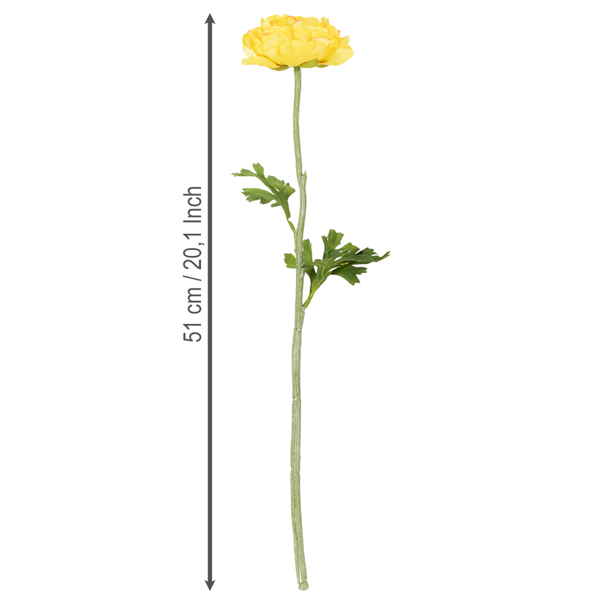 Unsere hochwertigen Ranunkeln sind aus feinstem Seidenstoff und widerstandsfähigem Kunststoff gefertigt. So erhalten Sie langlebige Dekorationen, die ihre Farben und Schönheit über Jahre bewahren. Mit 51 cm Höhe und naturgetreuer Anmutung lassen sich die Ranunkeln problemlos in jede Vase oder jedes Arrangement einfügen.