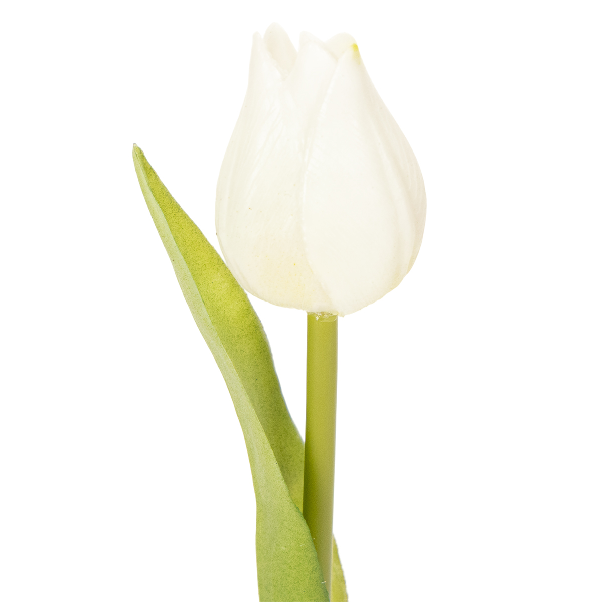 Dank der vielseitigen Kombinierbarkeit lassen sich diese Tulpen mühelos in nahezu jedes Deko-Konzept einfügen. Die weißen Kunstblumen harmonieren besonders gut mit anderen Kunstpflanzen wie Eukalyptuszweigen oder zarten Gräsern, aber auch in klassischen Glasvasen strahlen sie schlichte Eleganz aus.