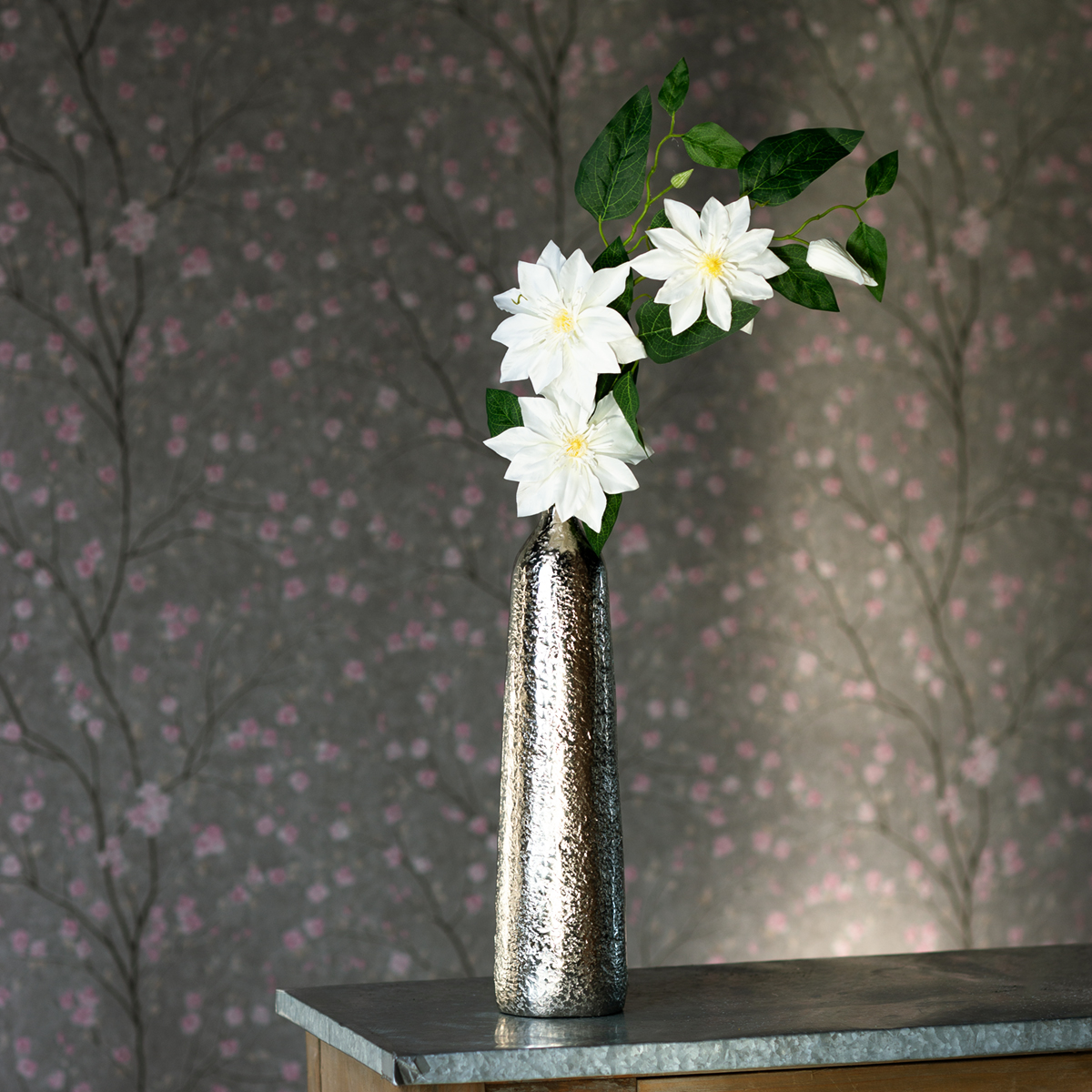 Dieser Clematis Zweig passt besonders gut zu einem zeitgenössischen Stil. Klare Formen, helle Farben und schlichte Vasen unterstreichen die Eleganz dieses Dekoelements. Perfekt kombinierbar mit Keramikvasen, Glaselementen oder minimalistischen Kerzenhaltern.