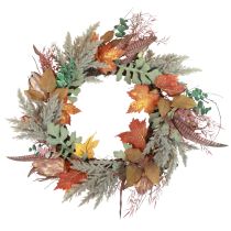 Als Kranzunterlage dient ein echter Rebenkranz dem ein stabiler Metallring Form gibt. Auf den Rebenkranz sind alle künstlichen Kranzbestandteile bereits fertig aufgebunden, sodass Sie ihn direkt verwenden können!