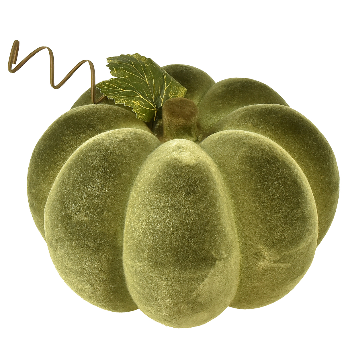 Der 20cm große, grüne samtig beflockte Kürbis überzeugt durch seine Liebe zum Detail und das hochwertige Material. In moderner Landhaus-Optik integriert er sich harmonisch in unterschiedlichste Wohnlandschaften und bringt den Charme der Herbstzeit in Ihr Zuhause. Die Beflockung verleiht dem Kürbis eine weiche Oberfläche, während die naturgetreue Gestaltung mit einer akzentuierten Blattapplikation und Ranken für einen authentischen Look sorgt.