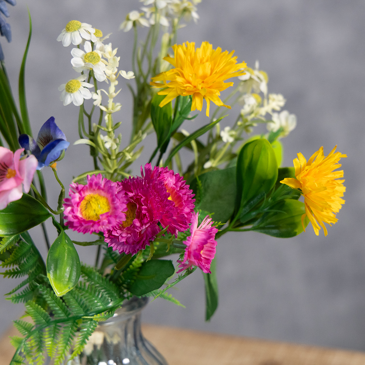 Dieser Kunstblumenstrauß kombiniert die optimistische Ausstrahlung von gelben, rosa und blauen Blüten mit einem modernen Landhausstil. Aus pflegeleichtem Polyester und robustem Kunststoff gefertigt, wirkt er täuschend echt und bleibt dauerhaft farbenfroh. Mit einer Höhe von 37 cm passt er ideal auf Tische, Regale oder Fensterbänke.