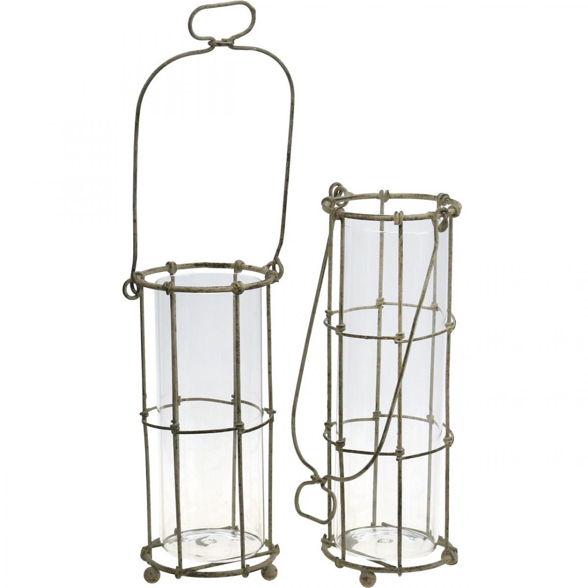 Das Set aus drei unterschiedlich großen Windlichtern aus Metall mit Glaseinsatz kann als Tischschmuck oder Hängedeko indoor oder im Garten genutzt werden. Arrangieren Sie die Windlichter aus Metall und Glas nebeneinander auf einer Festtafel oder im Fensterbrett. Sie können den gläsernen Einsatz der Laterne auch mit Wasser füllen und ihn als originelle Blumenvase nutzen.