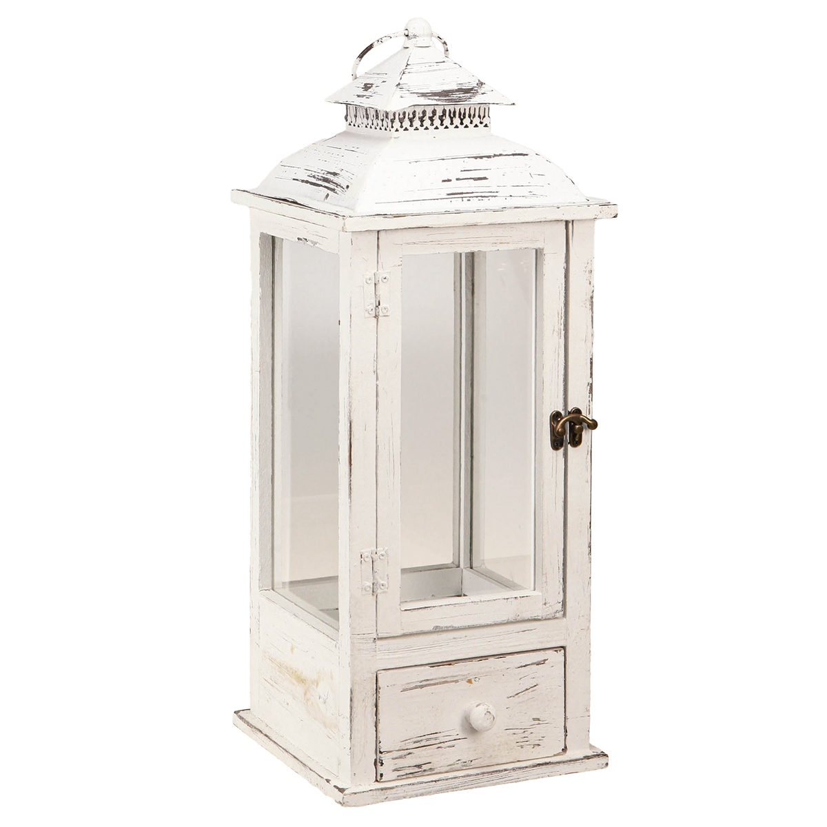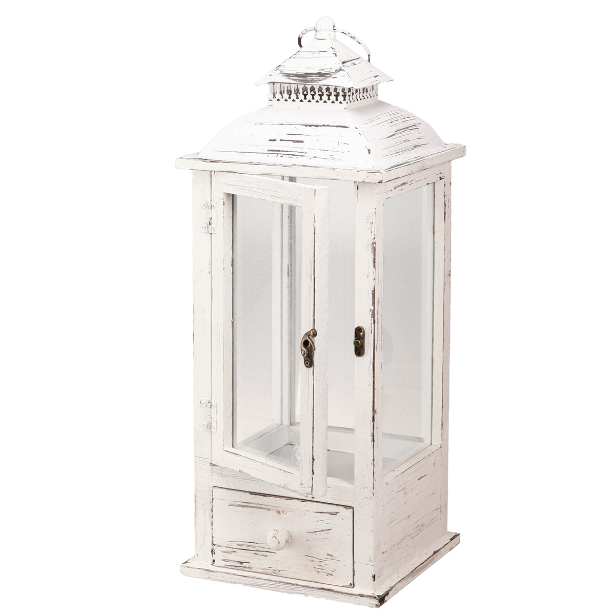 Produktname: Deko Laterne Vintage mit Schublade Weiß 20×20cm H51cm