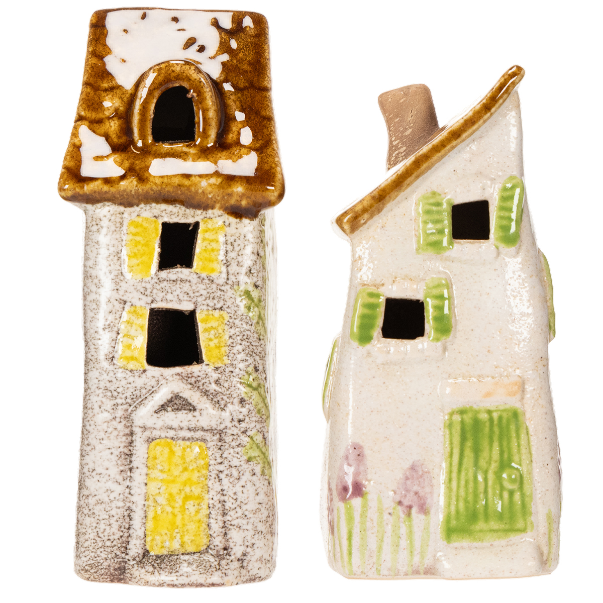 - Set aus zwei handbemalten Keramikhäusern