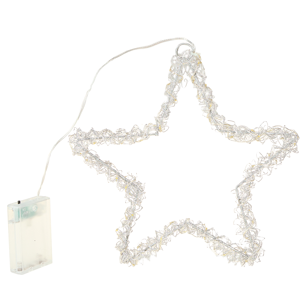 Ein strahlender LED-Stern aus silbernem Metall ist das perfekte Highlight für Ihre saisonale Dekoration. Mit seinem warmweißen Licht bringt er eine einladende Atmosphäre in jedes Ambiente.