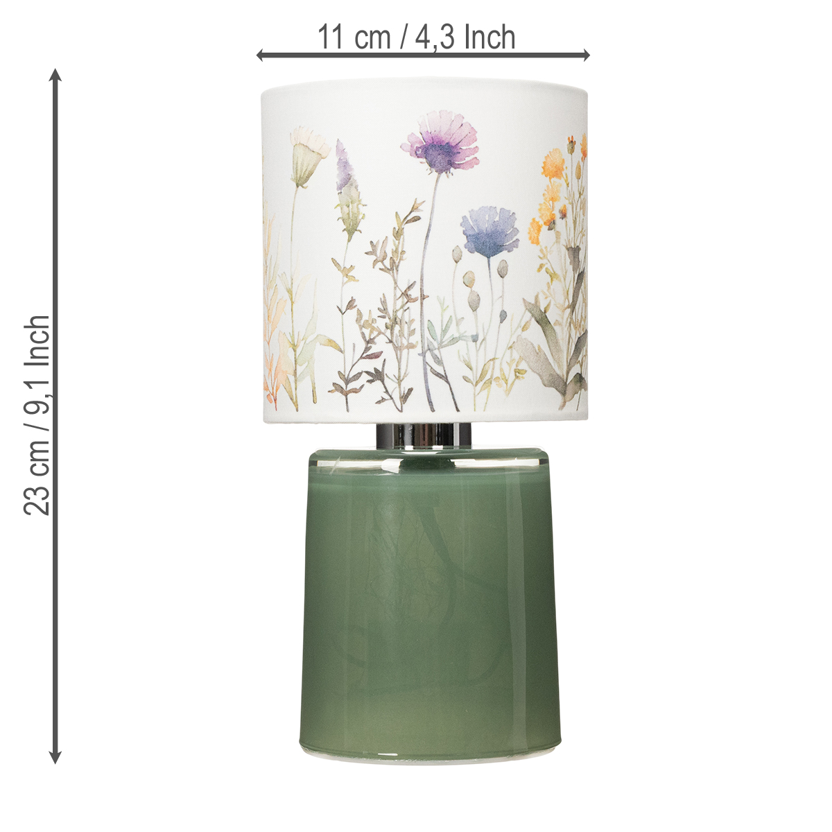 LED Tischlampe mit Blumenmuster, Glas- und Keramikdesign, 23cm, grün