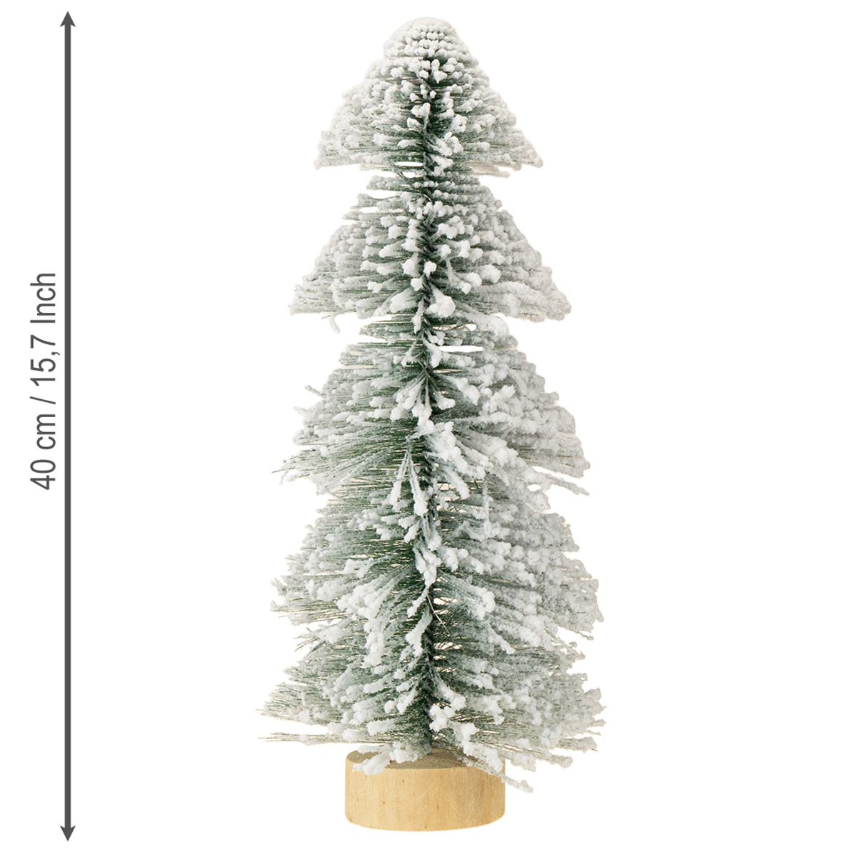 Produktname: LED Weihnachtsbaum Mini 40 cm Beschneit mit Holzsockel für Winterdeko