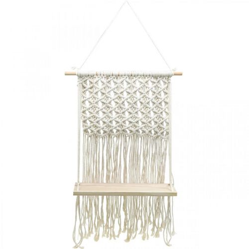 Produktname: Makramee Blumenampel Boho Stil Hängeregal Pflanzenhalter Fensterdeko Holzbrett 40x15cm
