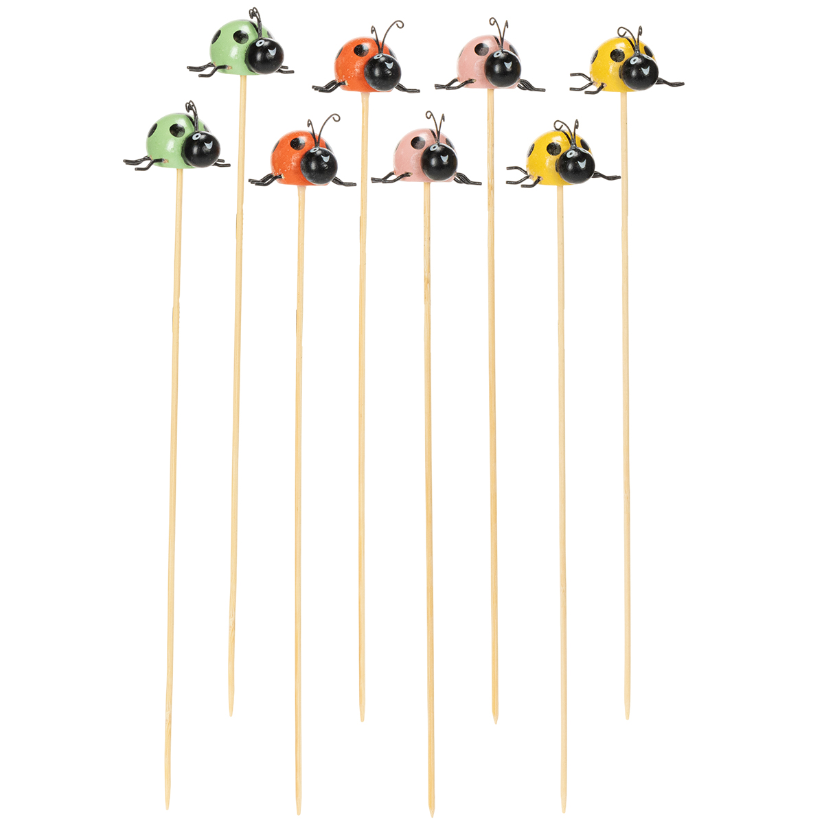Marienkäfer Dekofiguren auf Holzstab – Fröhliche Frühlingsdeko für Blumentöpfe und Blumenarrangements 32cm, 16-teilig