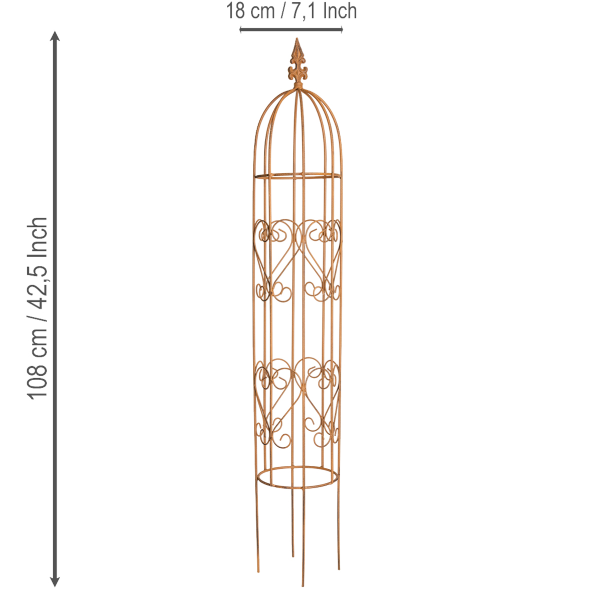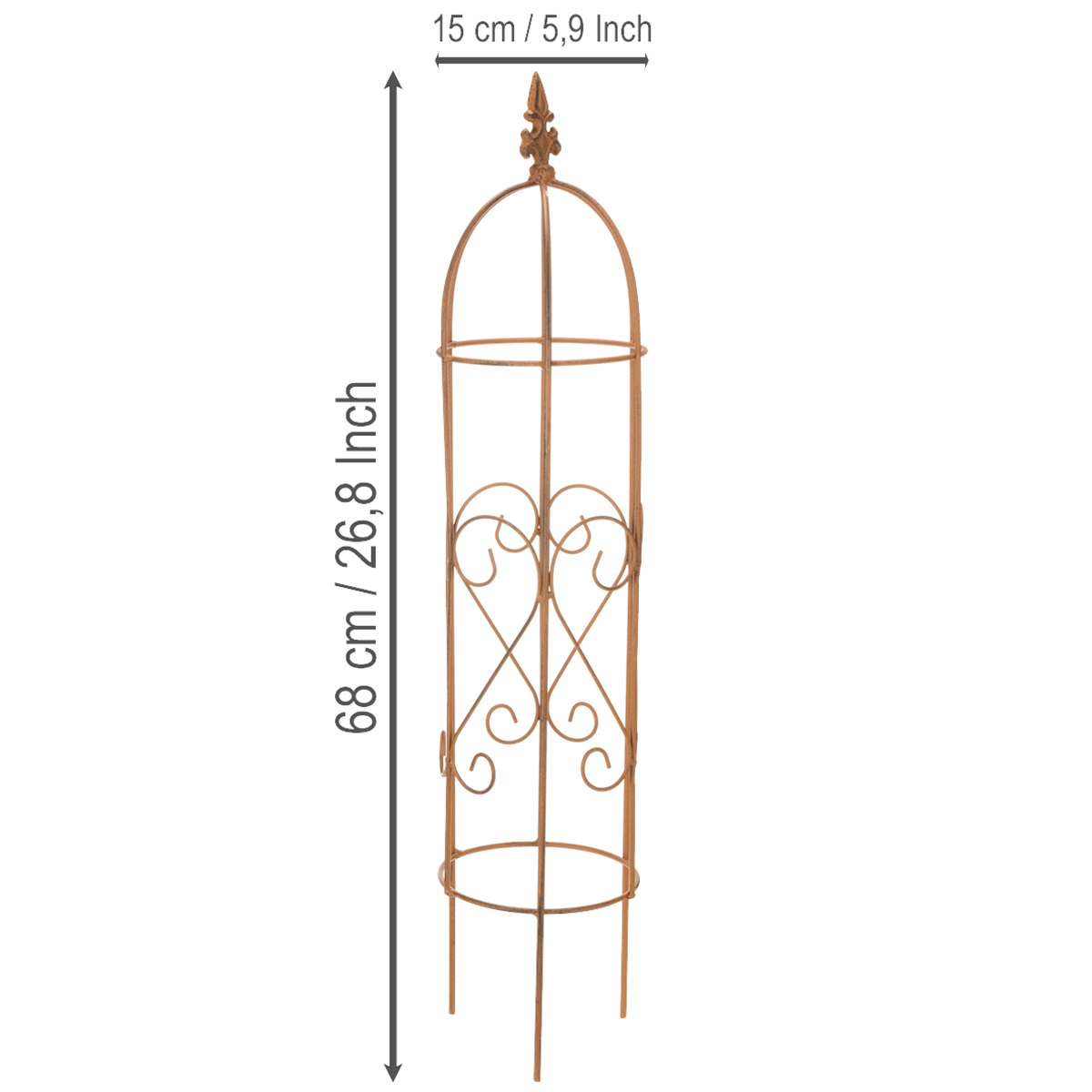 Diese beiden unterschiedlich großen Rankgitter sind eine stabile Rankhilfe aus Metall mit einer Höhe von 108 Zentimetern und 68 Zentimetern. Der Obelisk unterstützt optimal das Wachstum von Kletterpflanzen wie Rosen, Clematis und Efeu und eignet sich ideal für die Gestaltung von Außenbereichen. Mit seinem kompakten Maß und robusten Material ist es vielseitig einsetzbar und witterungsbeständig, wodurch es eine langfristige Lösung für die Begrünung und Strukturierung von Gärten darstellt.