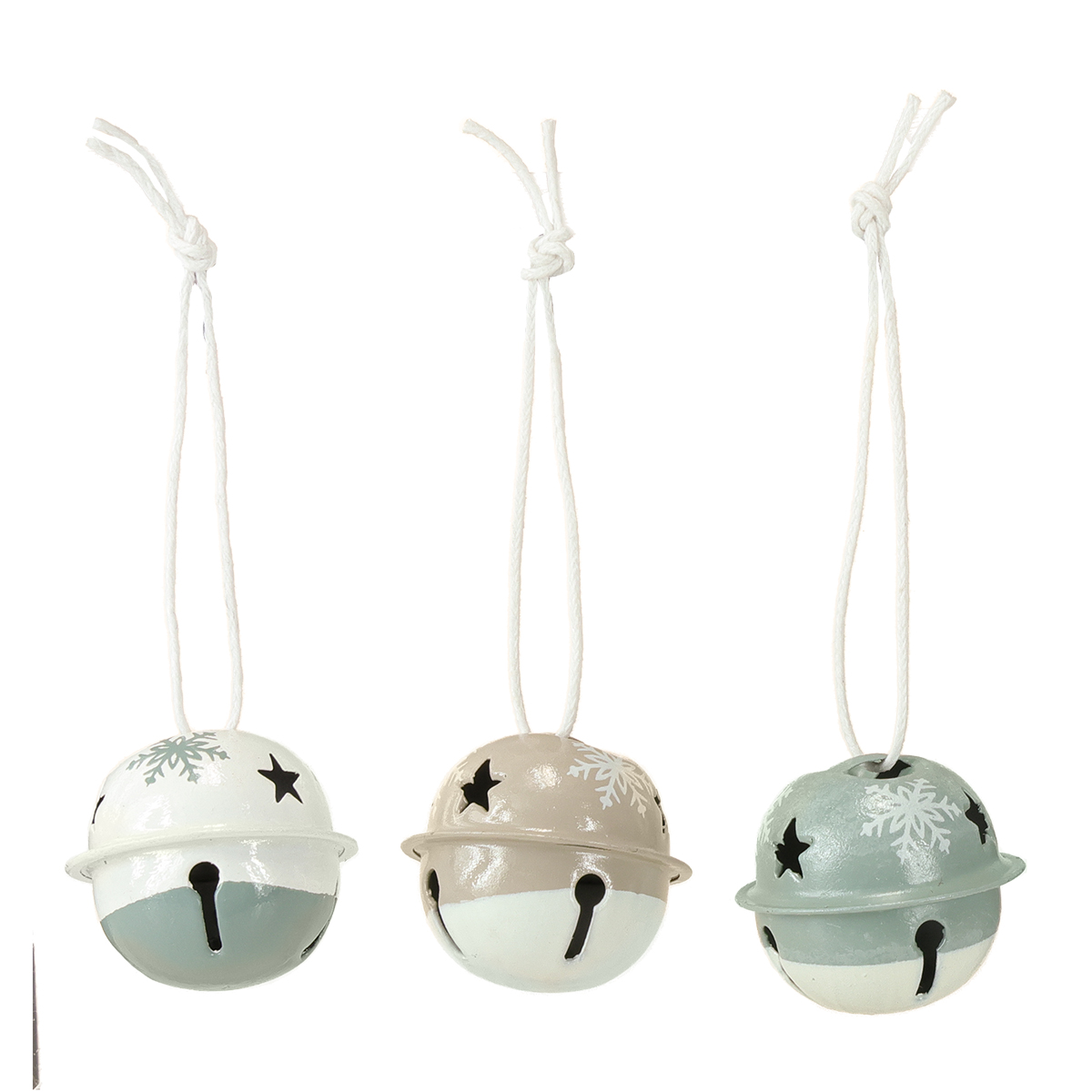 - Metallglocken in Mint und Beige mit Schneeflockendesign