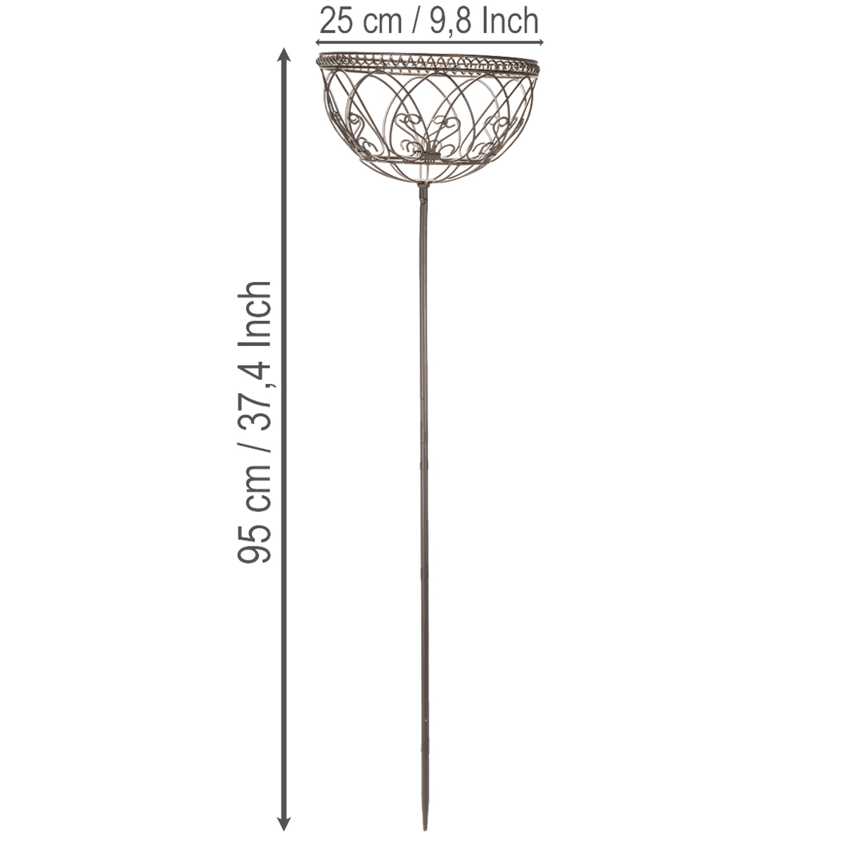 Dieser Metallkorb ist ein robustes und langlebiges Dekorationselement aus hochwertig verarbeitetem Metall mit einer braun lackierten Oberfläche. Mit einer Höhe von 95 Zentimetern und einem Durchmesser von 25 Zentimetern ist der Korb sowohl funktional als auch optisch ansprechend. Er eignet sich für die Nutzung in geschützten Außenbereichen und vielseitige Dekorationsanwendungen.