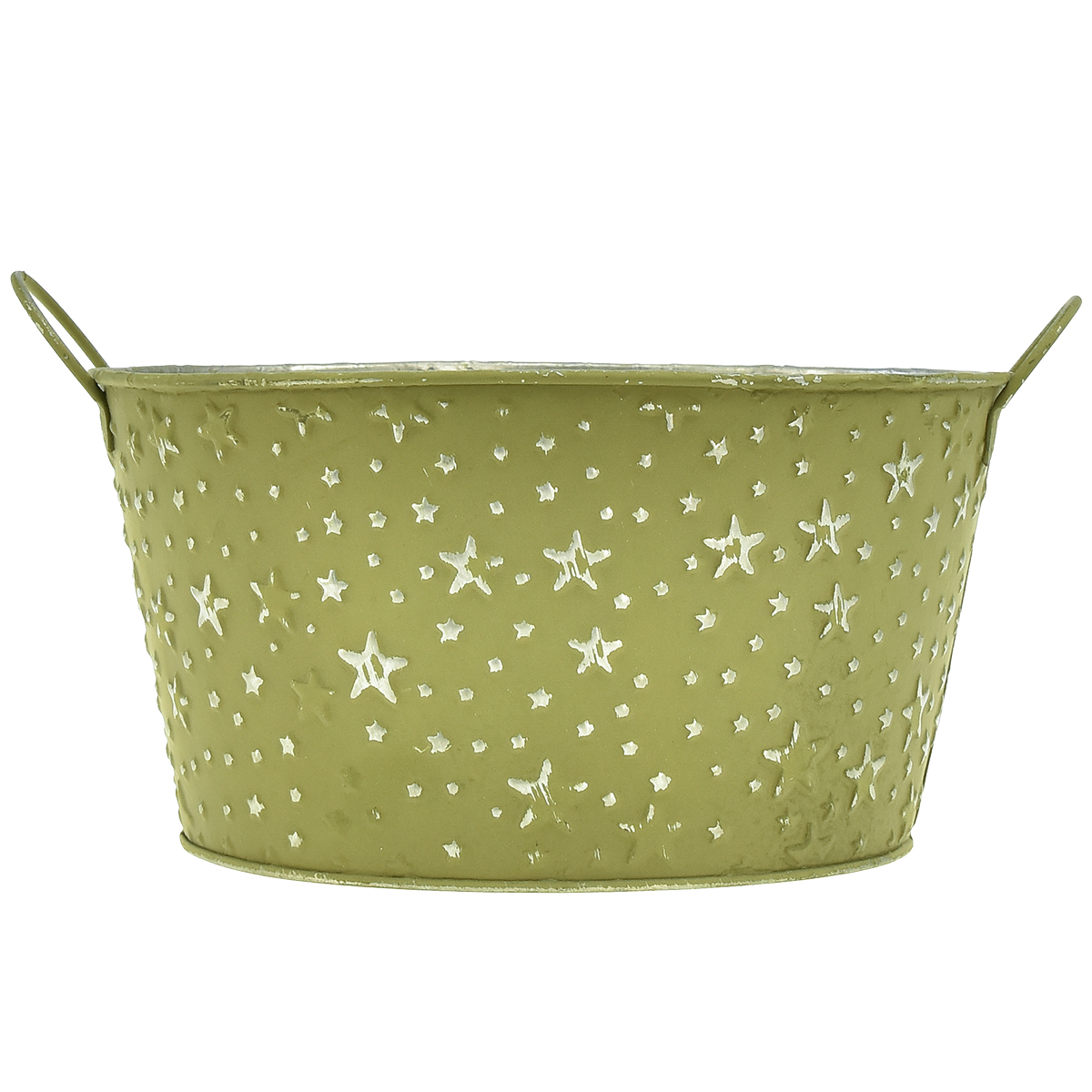 Metallschale mit Sternen und Griffen Grün Ø20cm H11,5cm