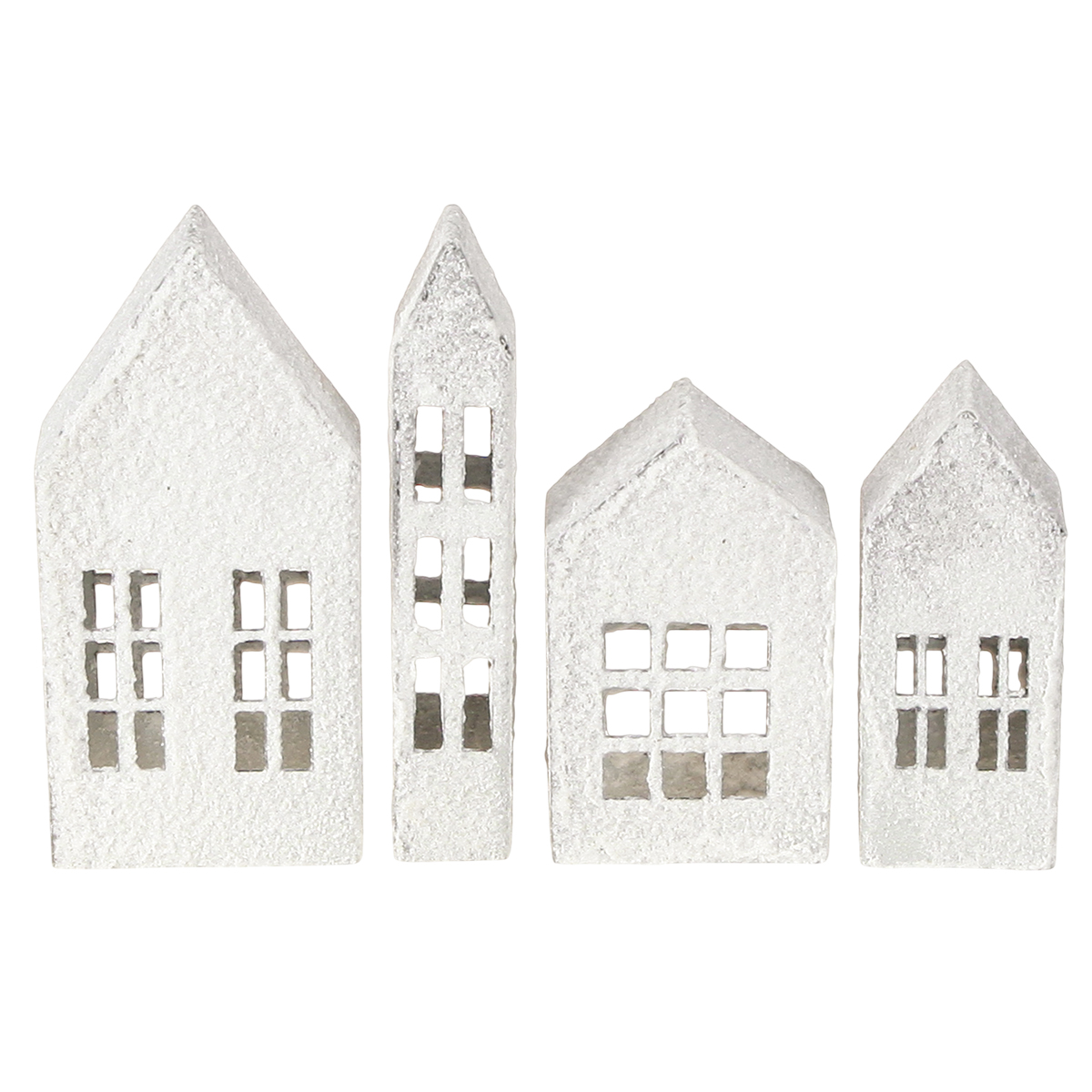 Miniaturhäuser aus Metall für dekorative Akzente 14cm 4er-Set weiß zeitlos und vielseitig