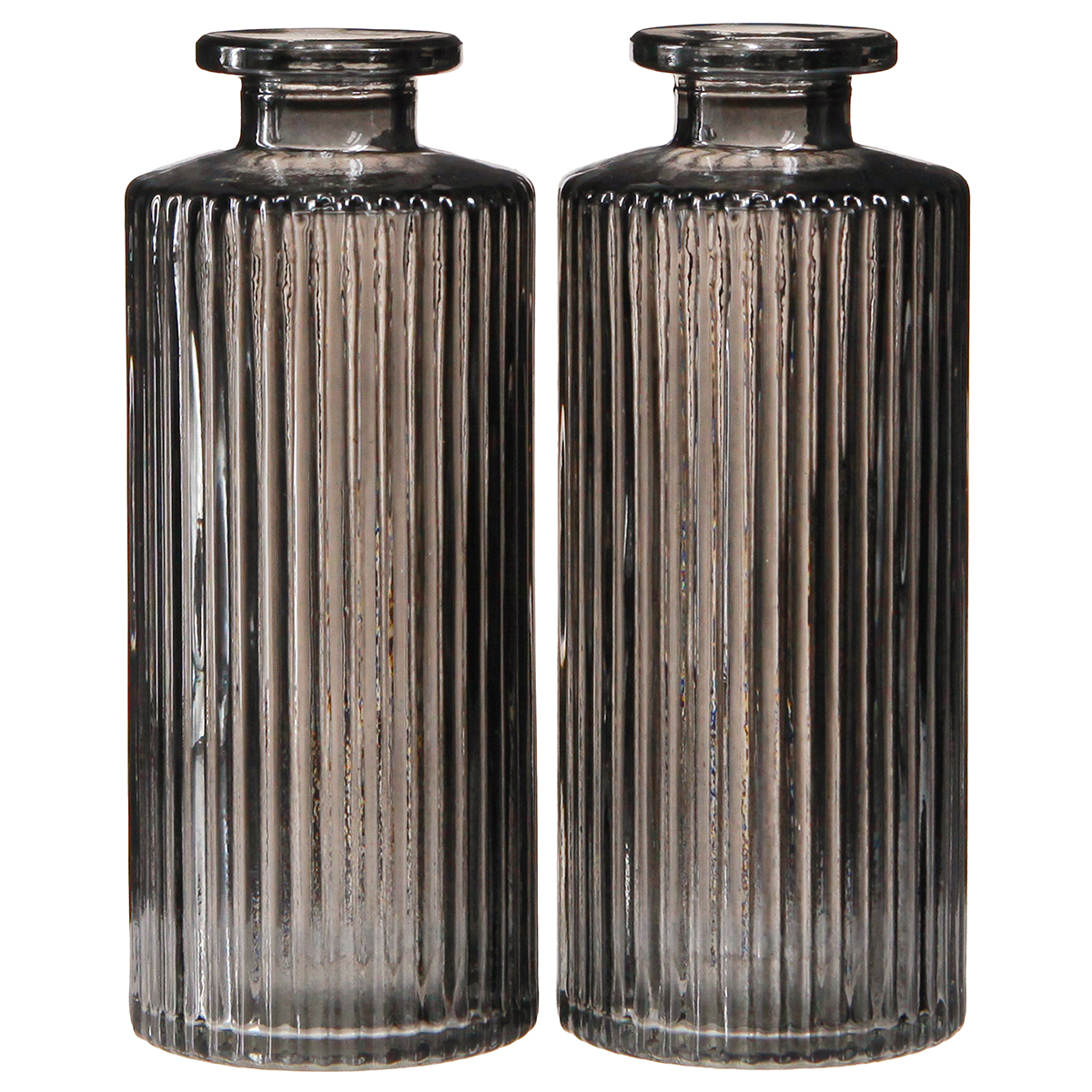 - Stilvolle Mini-Vasen aus grau gefärbtem Glas mit Rillendesign