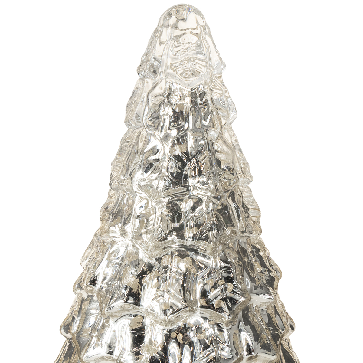 Dieser kleine Weihnachtsbaum beeindruckt durch seine hochwertige Verarbeitung aus Glas in Silber und Gold. Die warmen LED-Lichter brechen wunderbar in den filigran gestalteten Oberflächen und erzeugen eine behagliche Atmosphäre. Die leicht vintagige Farbstruktur und die detaillierte Spitze machen ihn zu einem Hingucker in jeder Weihnachtsdekoration.