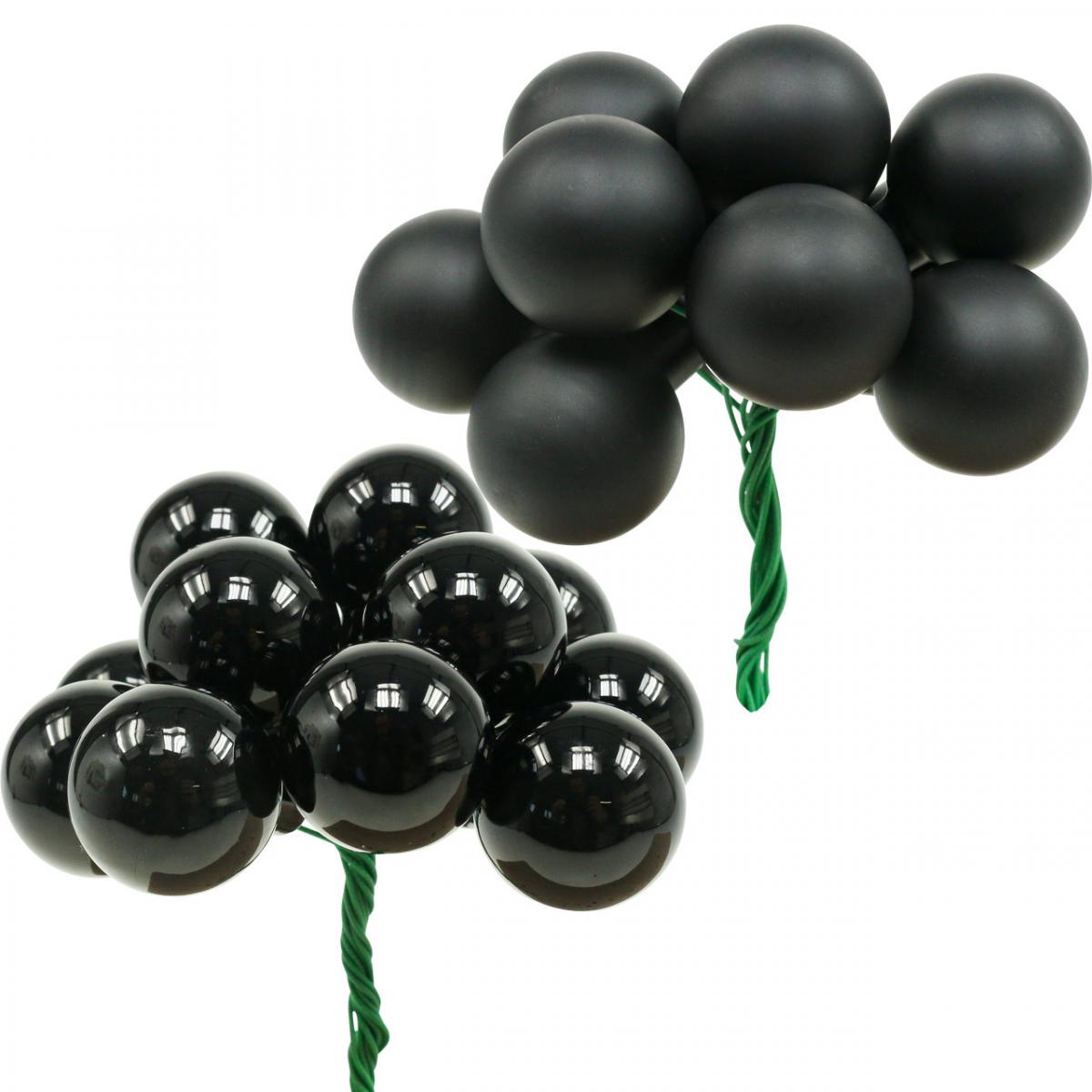 Diese Mischung bietet matte und glänzende schwarze Glaskugeln. Am biegsamen grünen Draht sind diese auch als Spiegelbeeren bekannten Mini-Weihnachtskugeln besonders praktisch. Sie lassen sich unkompliziert an der unterschiedlichsten Weihnachtsdeko befestigen.