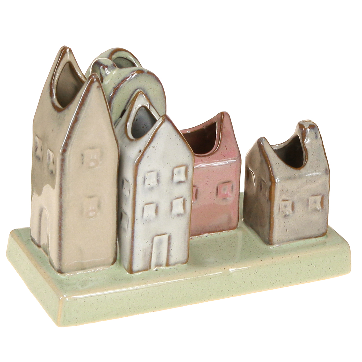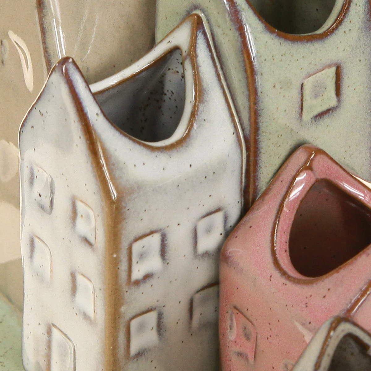 Minivasenset aus Keramik in Häuserform 14 cm – Tischdekoration in Pastell