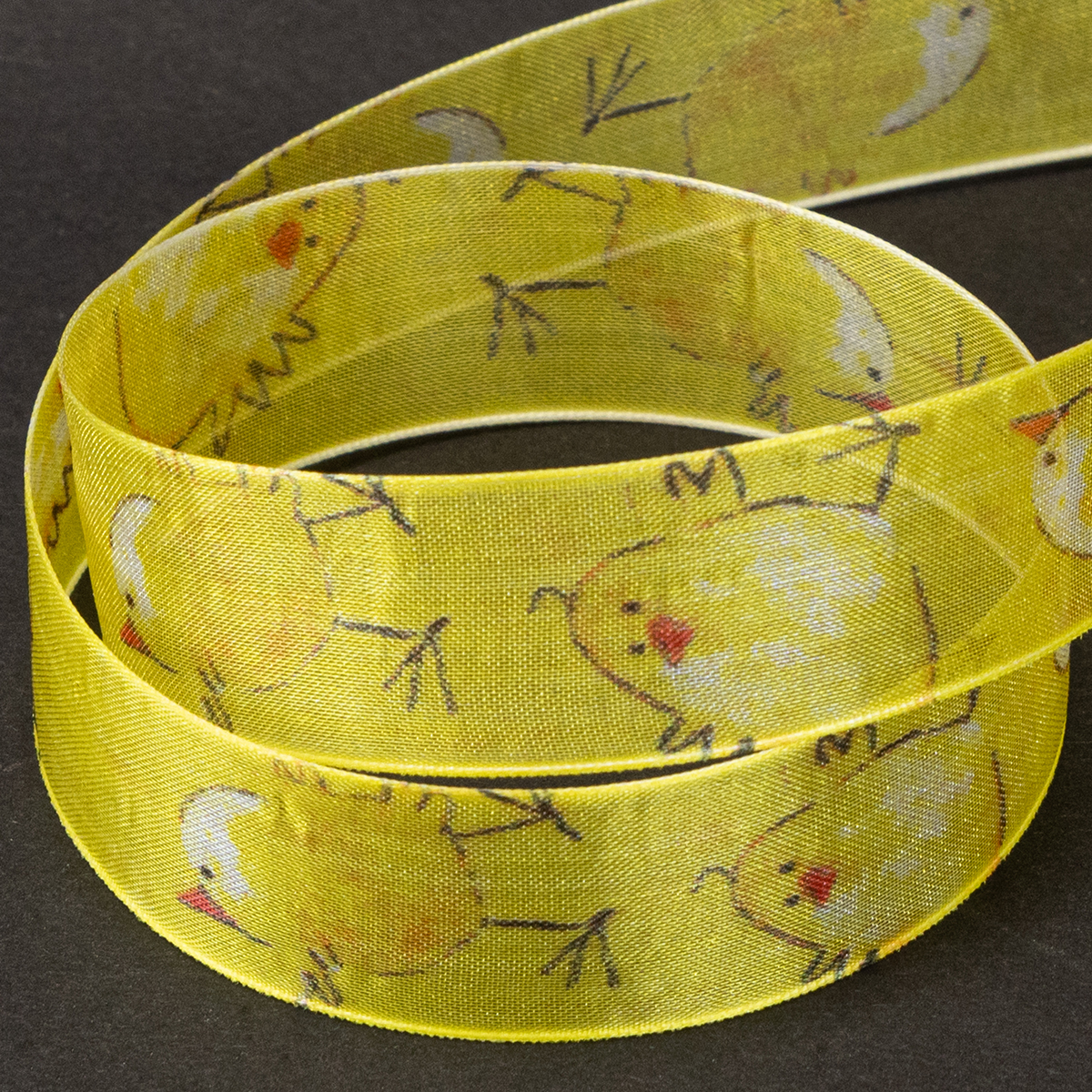 Organzaband Gelb Kükenmotiv Geschenkband Dekoband Ostern 25mm 20m