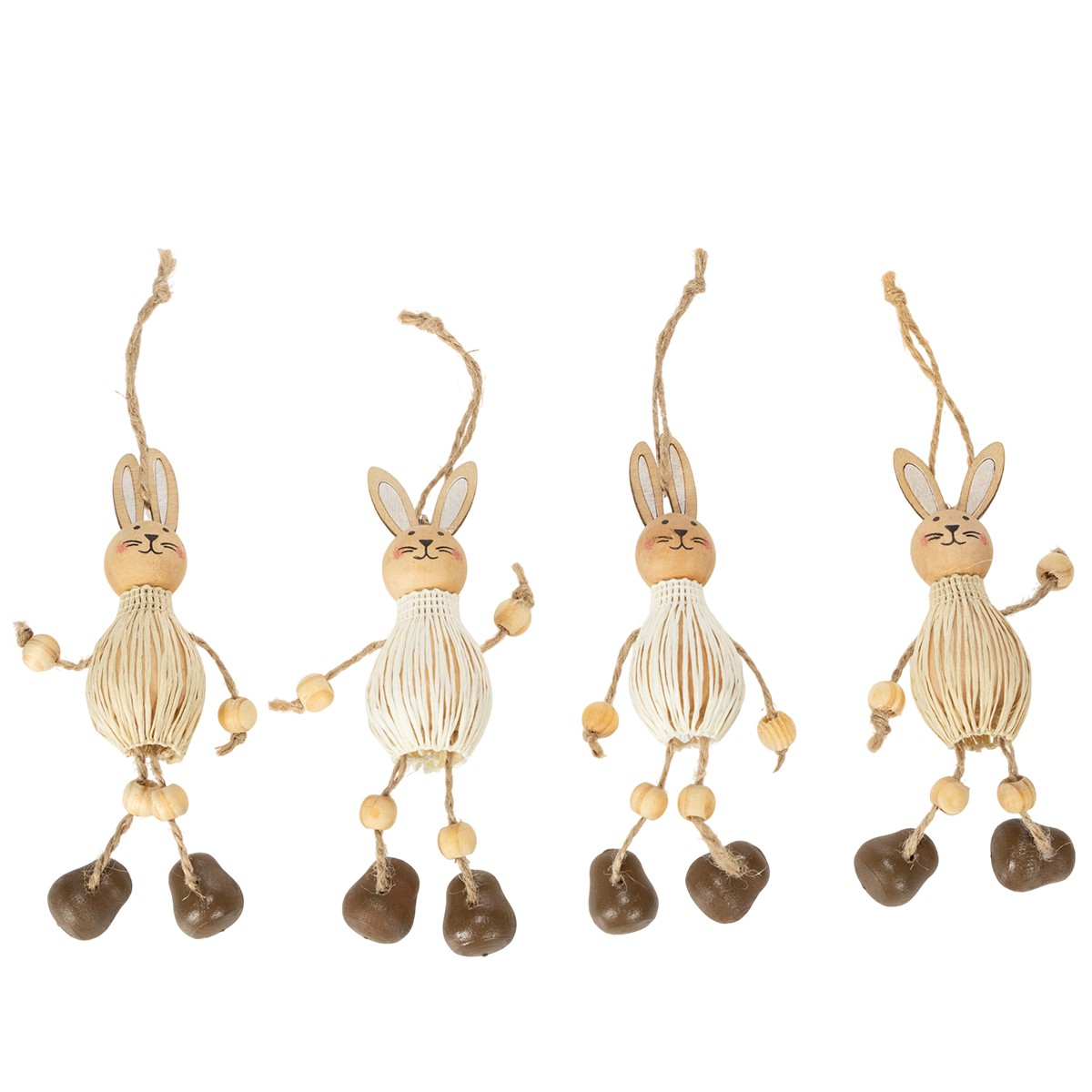 Osterhase Holz Hängedeko 12cm 4er-Set für natürliche Osterdekoration