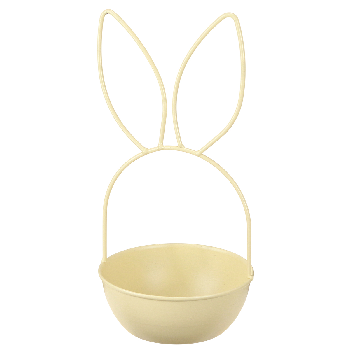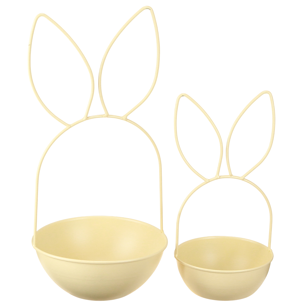 Osterkorb mit Hasenohren aus Metall, Hellgelb, Set aus 2 Körben, 34 cm und 25 cm, Tischdeko für Ostern